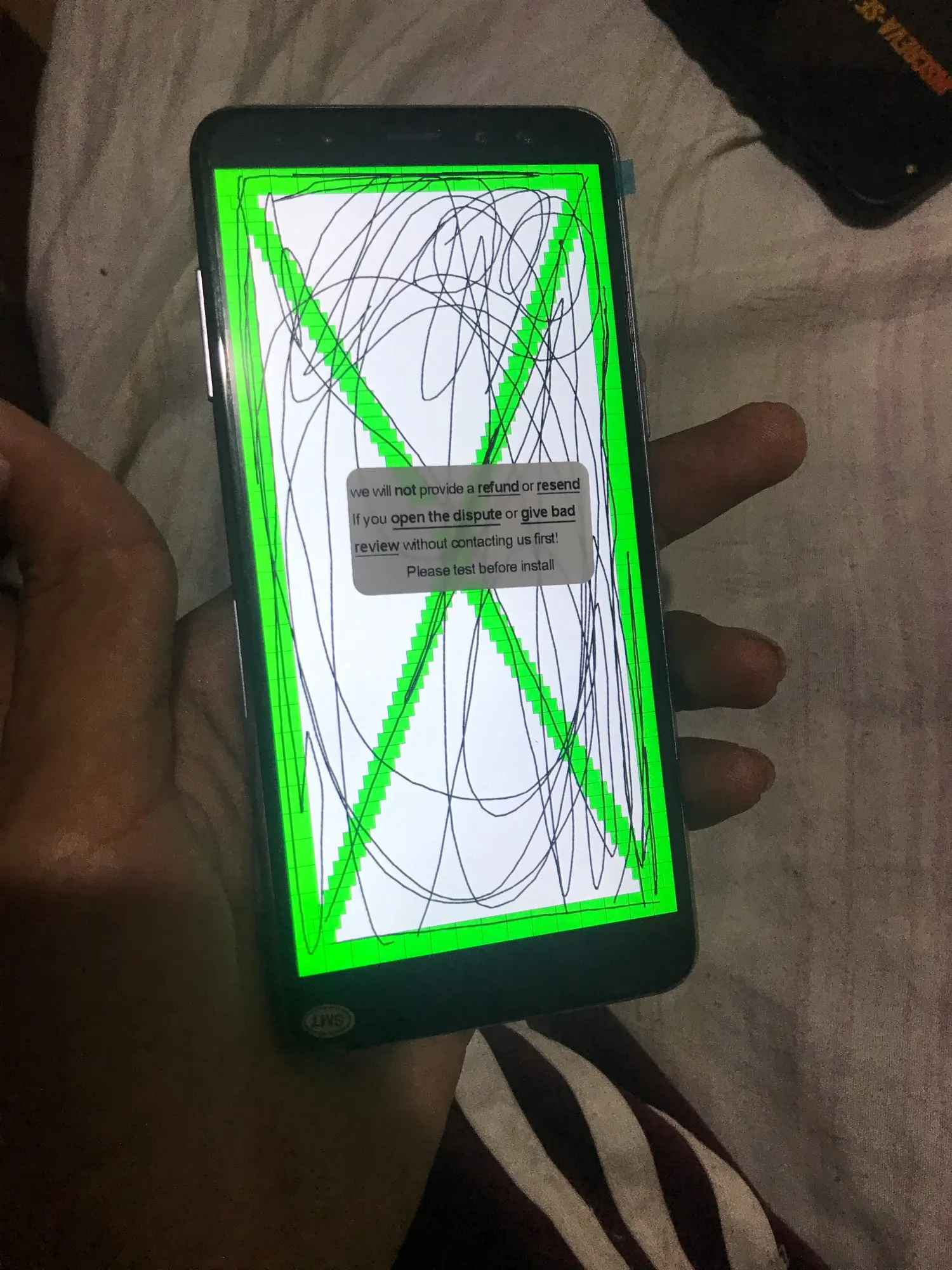 Экран пришёл неисправным, открыл спор, продавец подтвердил возврат денежных средств.