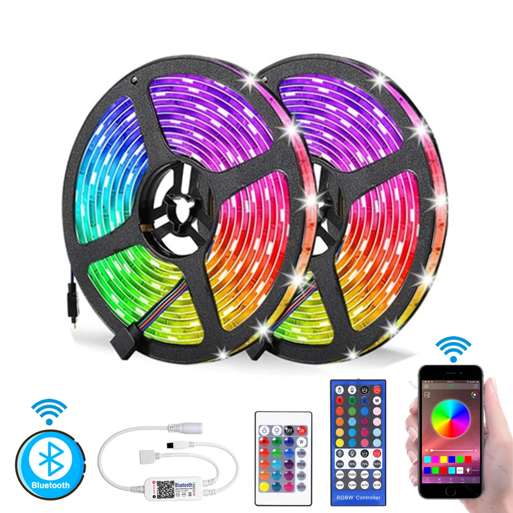 Светодиодная лента RGB, 5 м, 10 м, светодиодный светильник 5050 SMD, водонепроницаемая лента с Bluetooth и 24-клавишным управлением, 12 В постоянного тока, комплект адаптеров питания