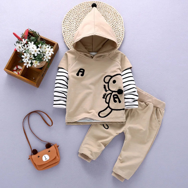 Комплект одежды для маленьких мальчиков на весну и осень, повседневная детская одежда, костюм из 2 предметов с капюшоном + штаны, милая детская одежда, 2019