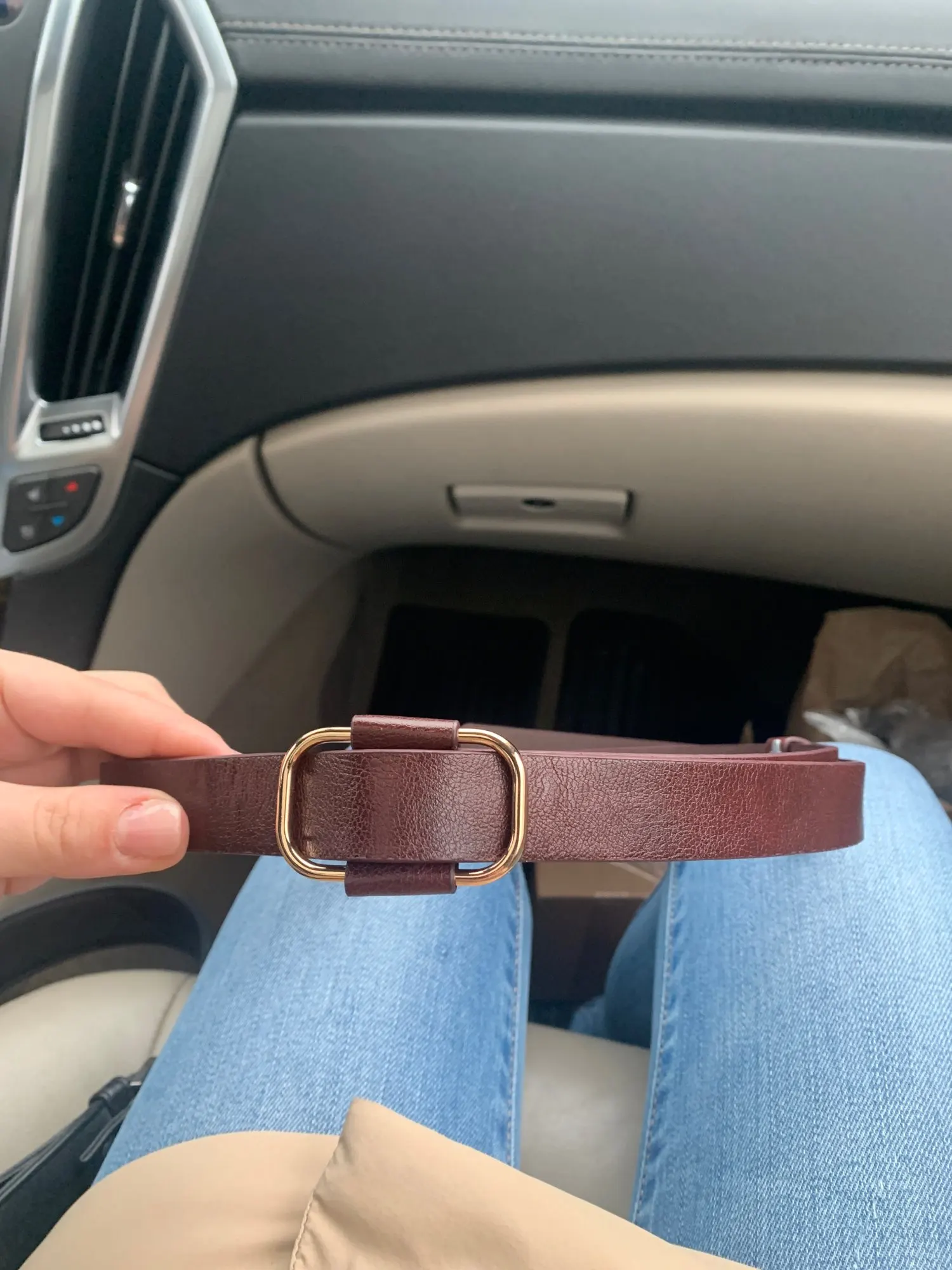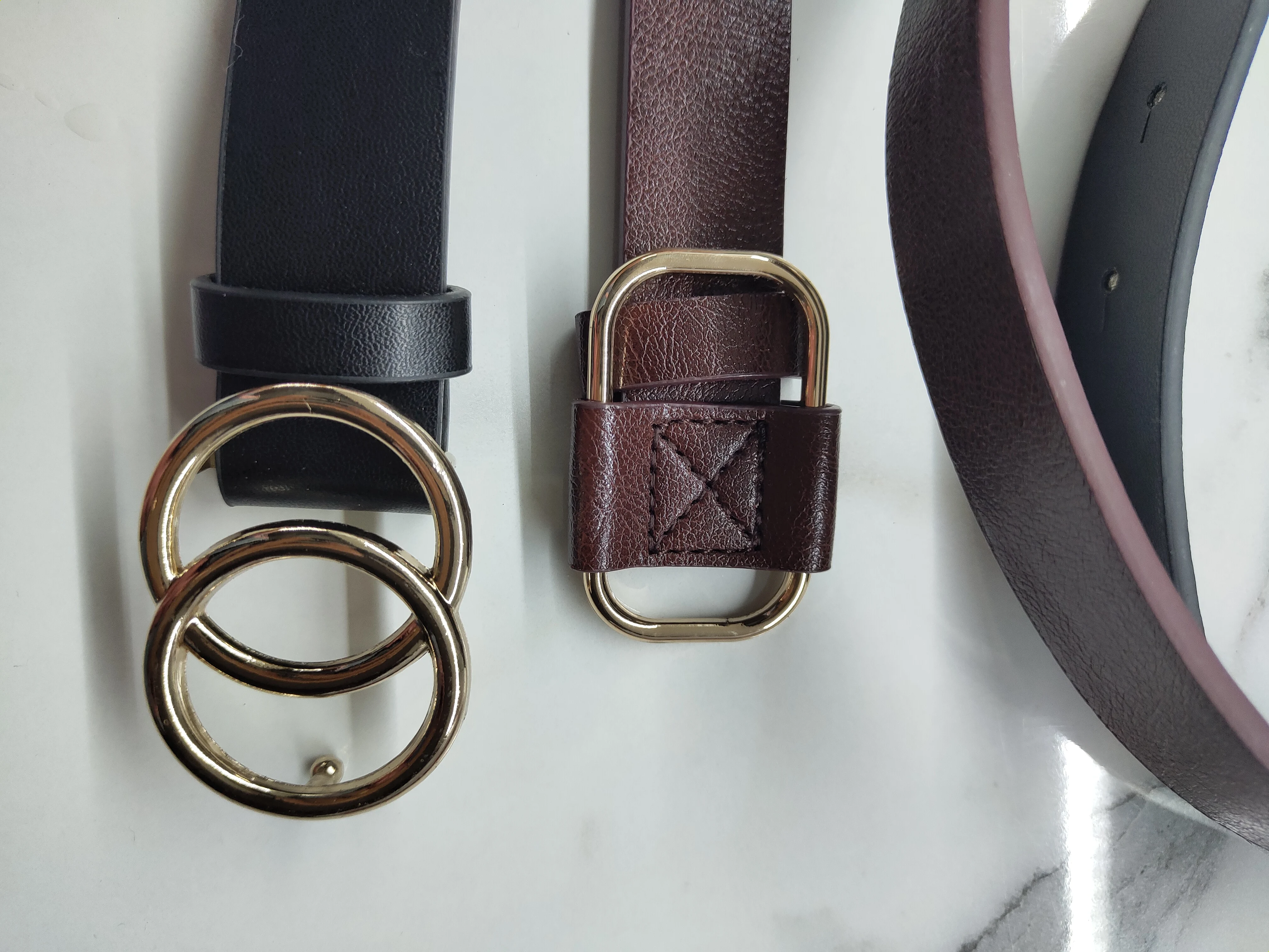 Ремень хорошего качества, держится, надевать можно и на брюки, и на платье, универсально