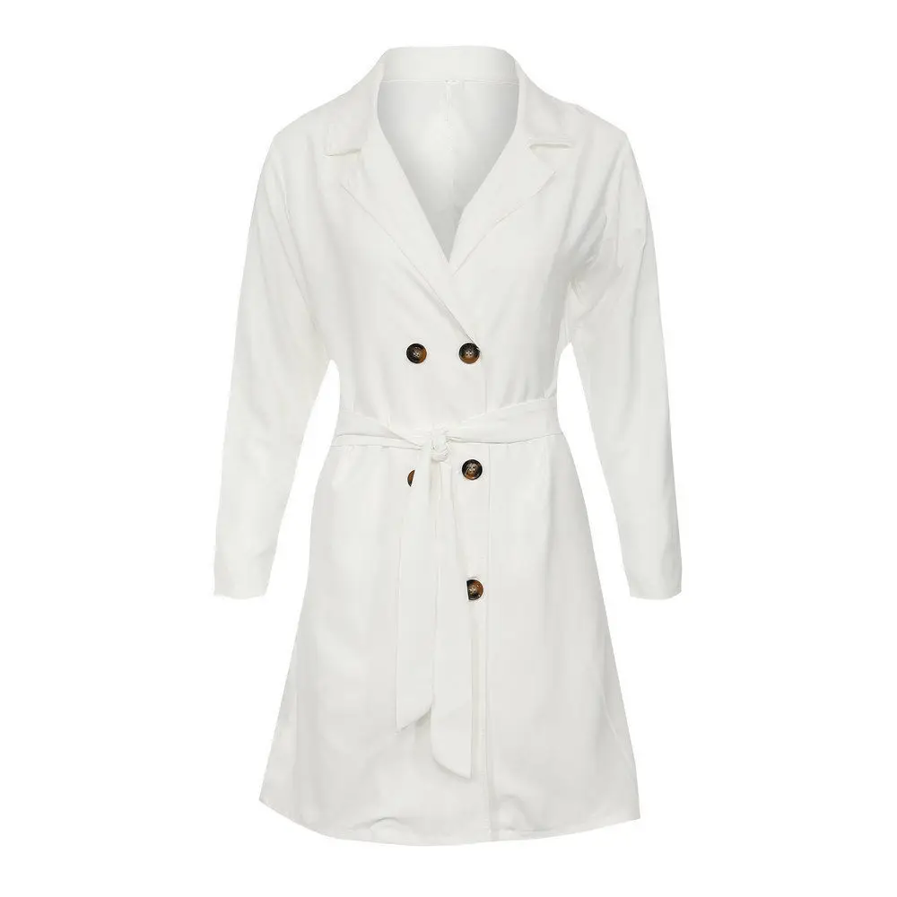Лидер продаж, модный Женский Тренч, верхняя одежда, осенняя ветровка, женское двубортное длинное пальто с лацканами и поясом