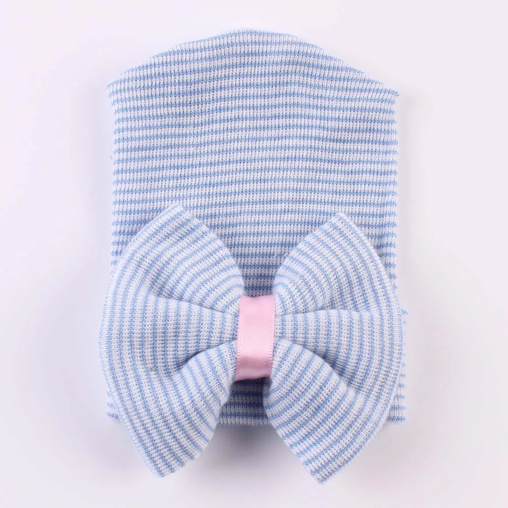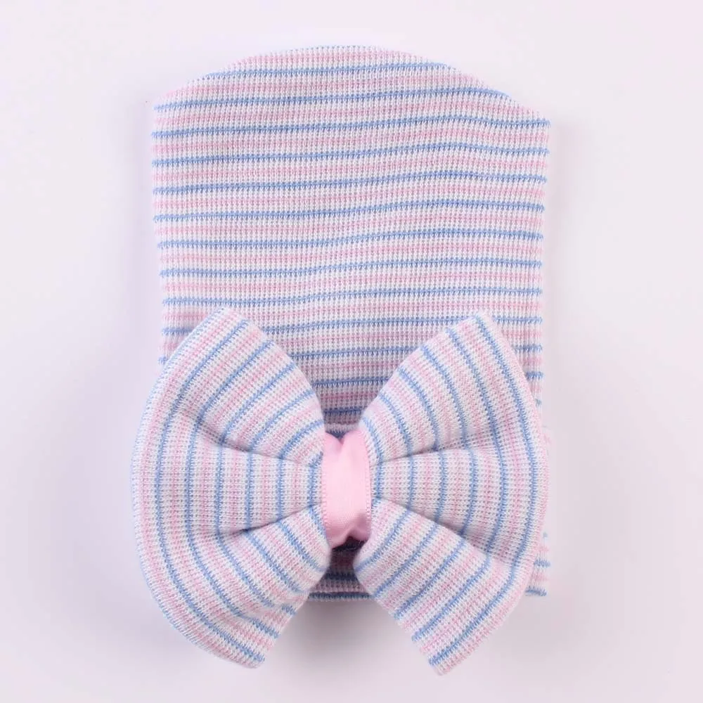 Мягкие хлопковые шапки в полоску с бантом для новорожденных девочек