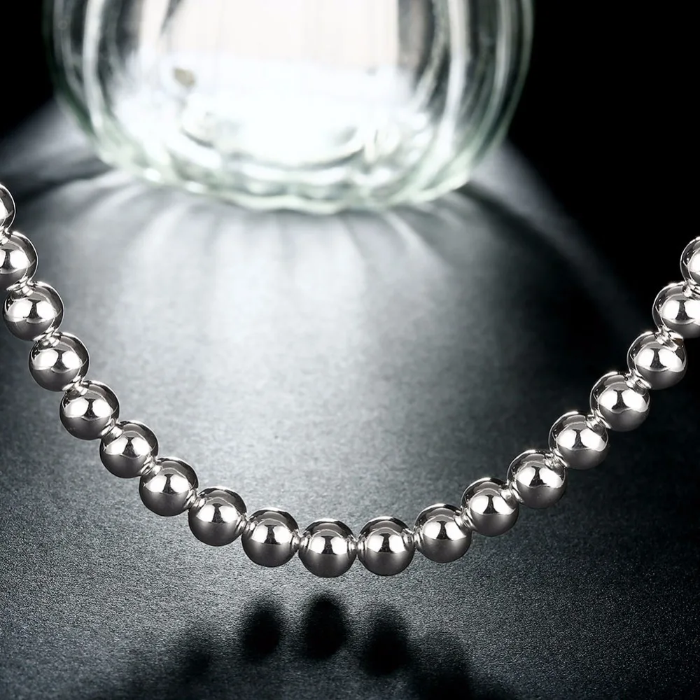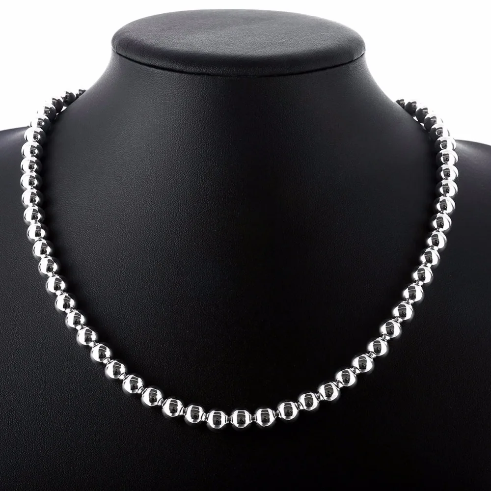 Женское ожерелье из серебра 925 пробы, с гладкими бусинами, 6 мм