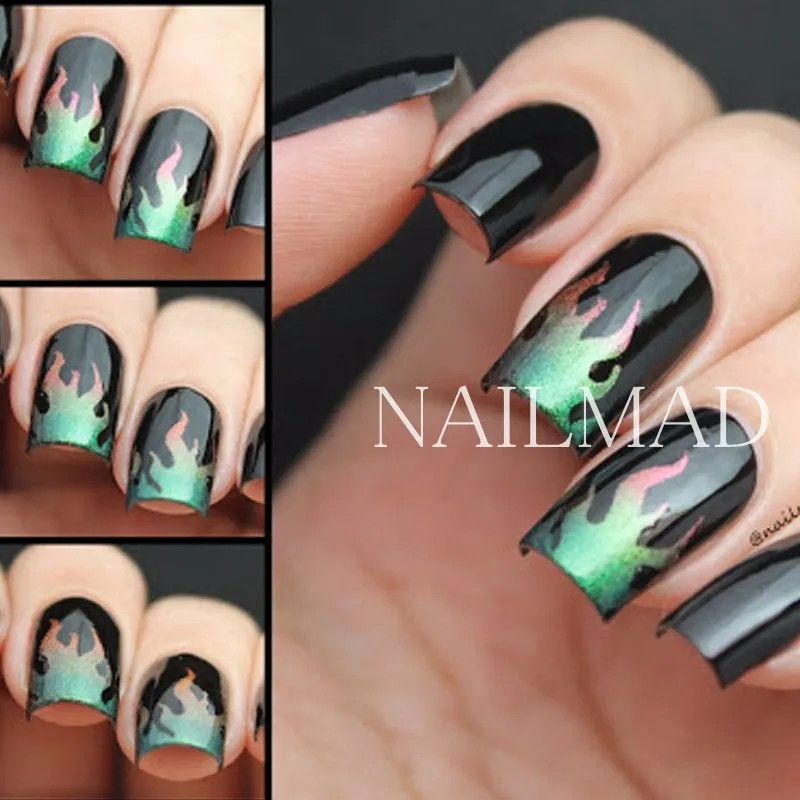Голографическая лента для ногтей, 16 шт.лот, тотем пламени, тонкие лазерные наклейки, серебряные полоски, наклейки из фольги для рукоделия