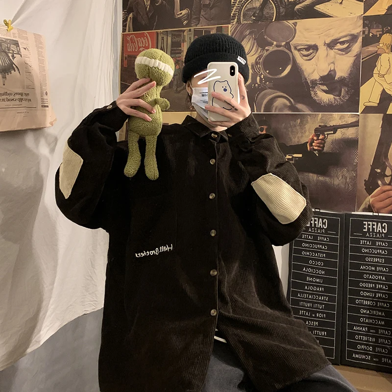 2020 Мужская модная утепленная Вельветовая рубашка с вышивкой, Лоскутная рубашка с французскими манжетами, мужская рубашка, Camisa Masculina M-2XL