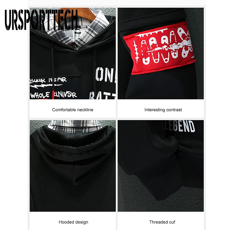 Мужская толстовка с капюшоном URSPORTTECH, с надписью, с длинным рукавом, уличная одежда в стиле хип-хоп, размера плюс, M-4XL