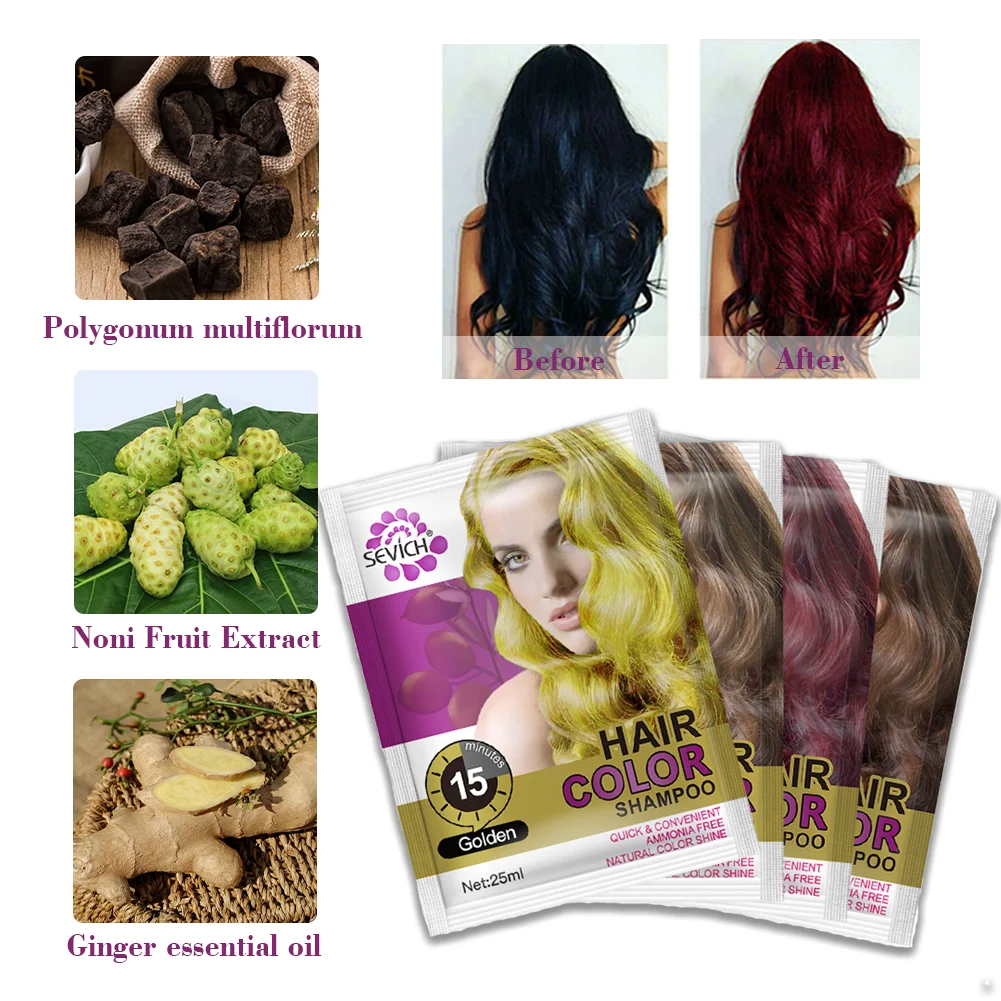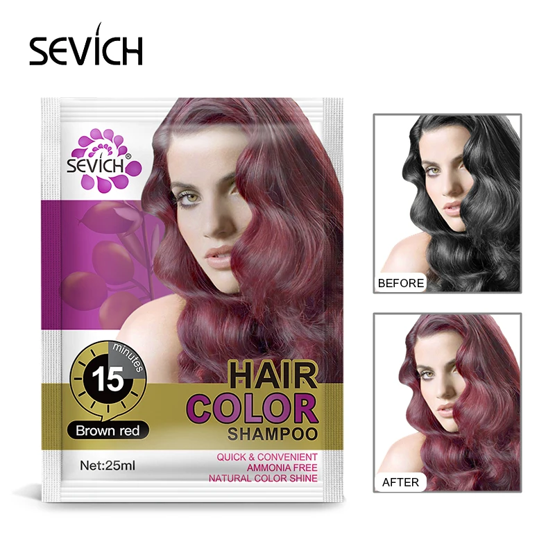 Шампунь для окрашивания волос Sevich 5 шт.лот, 25 мл, 5 цветов, шампунь для окрашивания волос, золотой, кофейный, красный, каштановый, черный цвет волос, продукт унисекс
