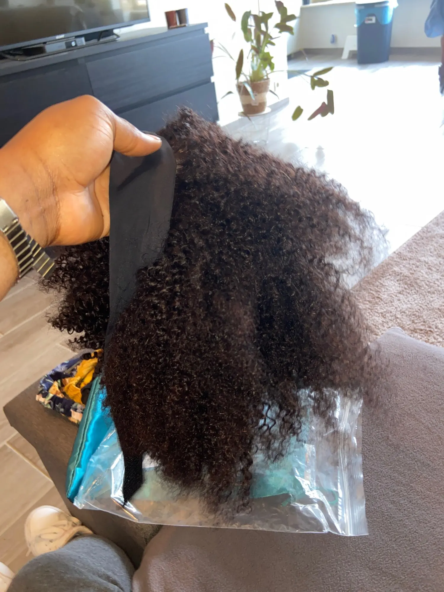 Парик был красиво упакован и выглядит как настоящие кудрявые волосы. Закажите еще раз с более длинными дюймами.