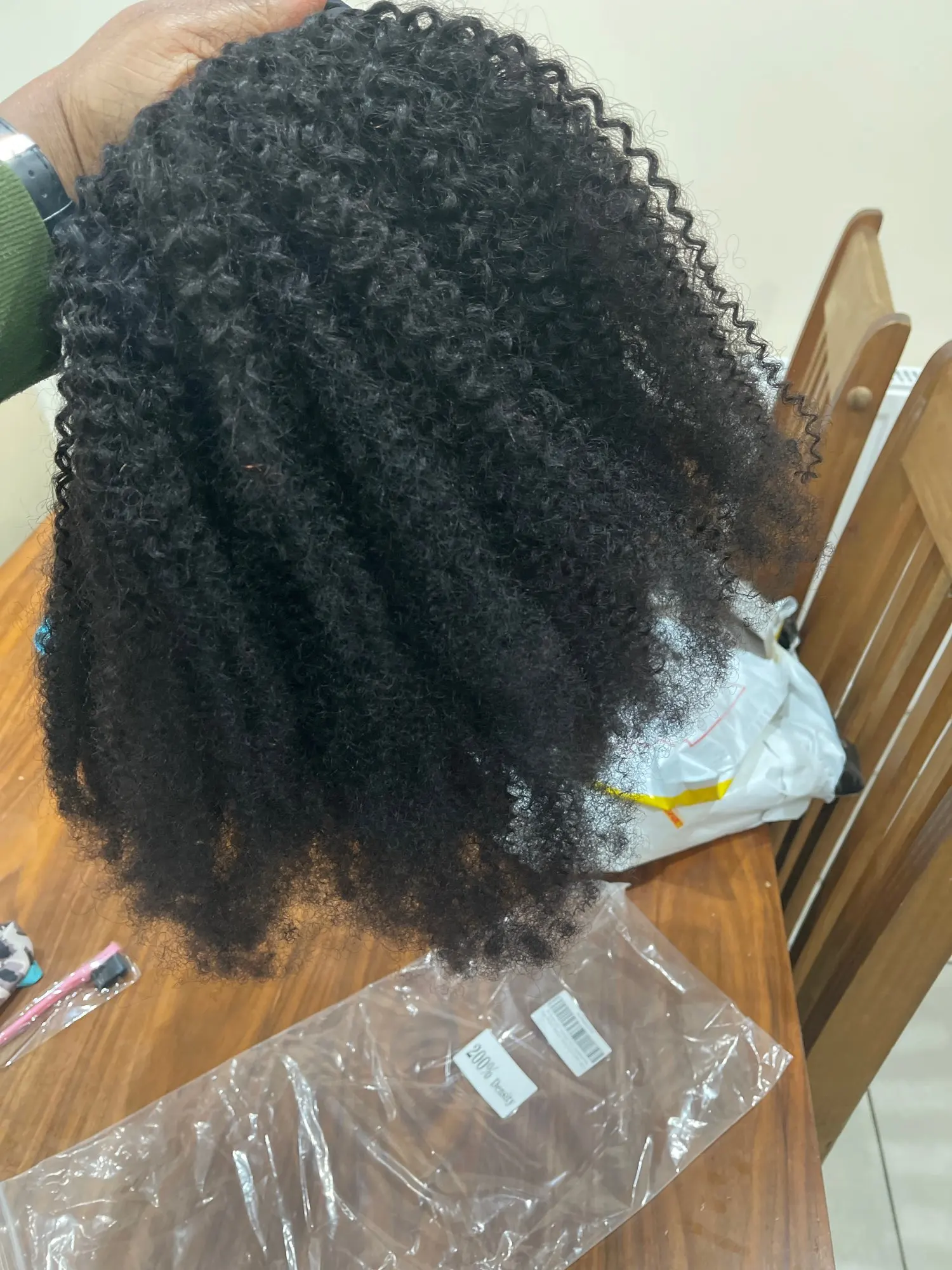 Эти волосы супер. Выглядит как мои натуральные локоны. Это так упругий и не имеет запаха, этот афро уникален.