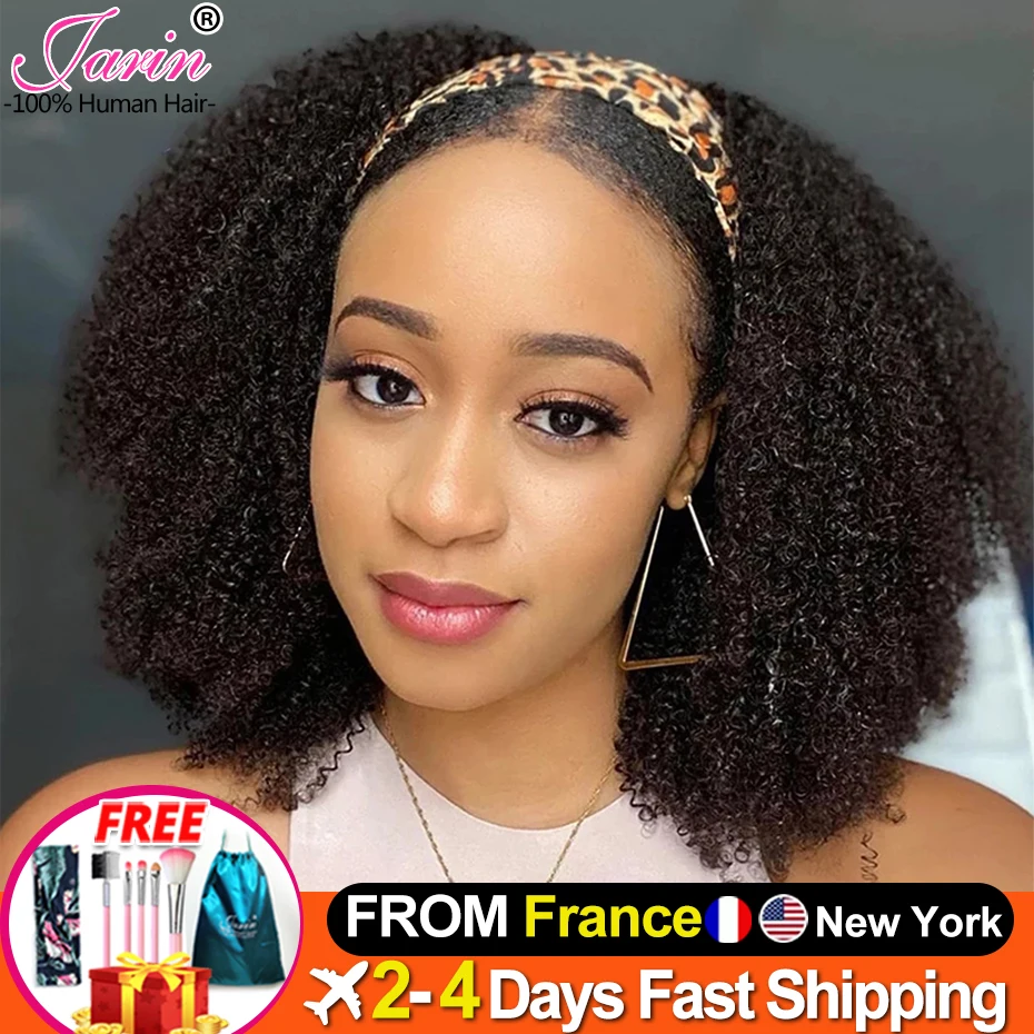 Афро кудрявые вьющиеся головные парики, парик плотностью 200% из человеческих волос, бесклеевая свободная головная повязка для черных женщин, афро вьющиеся волосы Remy Jarin