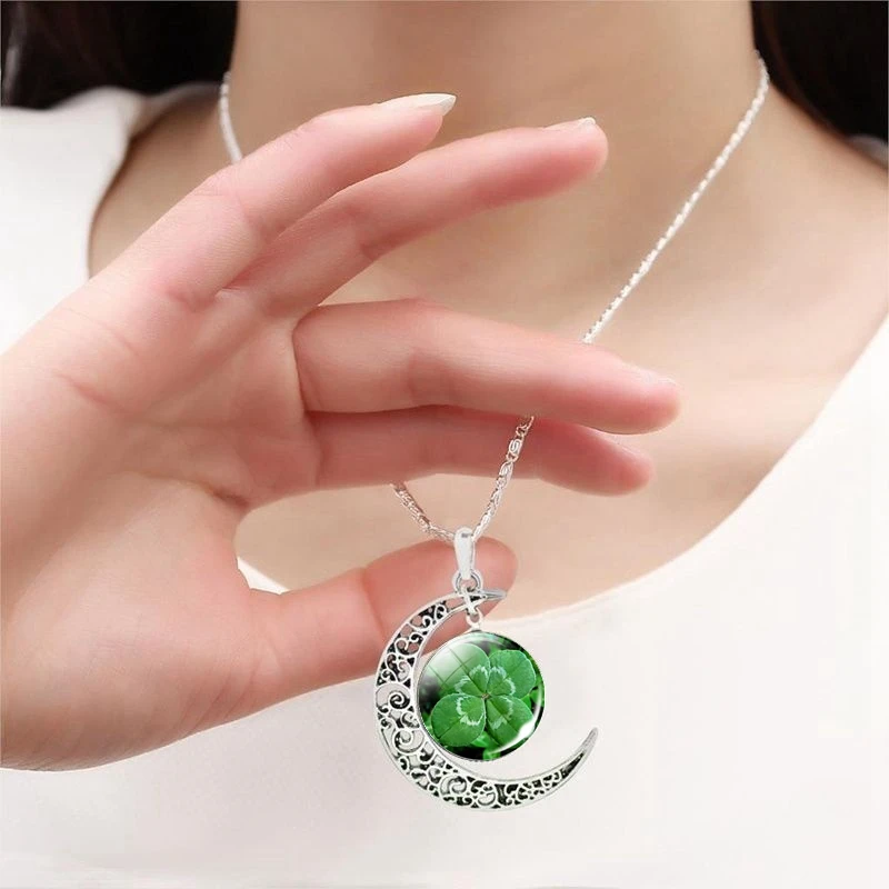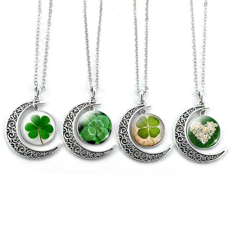 Цепочка с кабошоном Женская, ожерелье с натуральным четырехлистным клевером в стиле Дня Святого Патрика, модные аксессуары на удачу