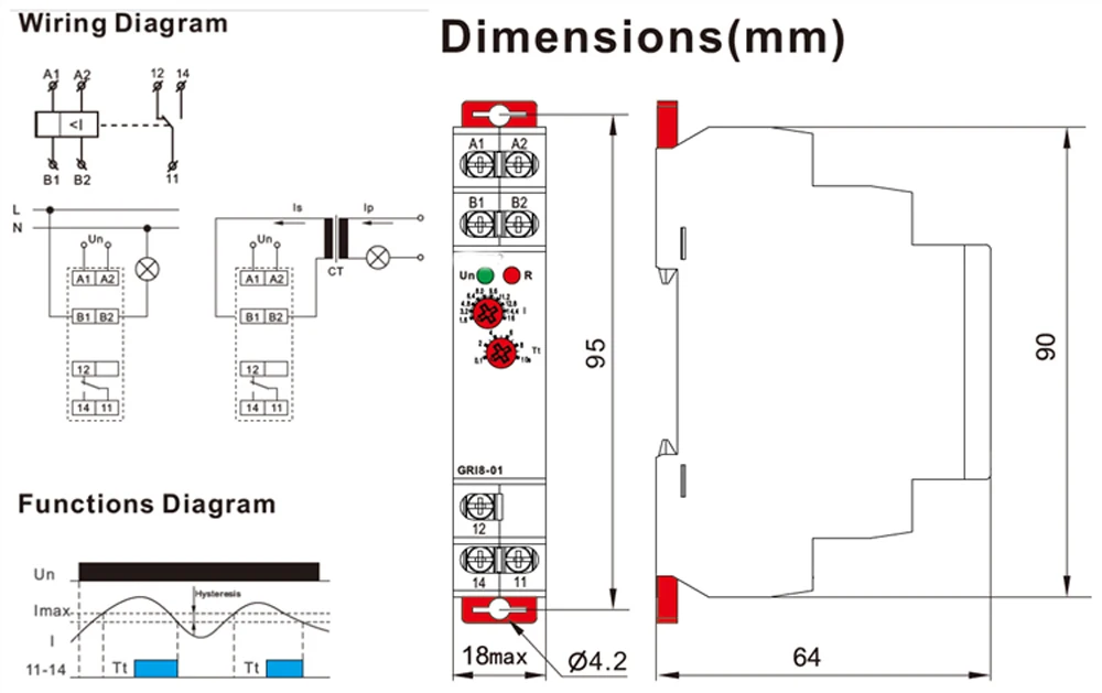 Функции -Регулируемая задержка 0,5-10 СДля устранения коротких пиков тока. -Гибкая регулировка потенциометра, на выбор 6 диапазонов: Переменный ток 0,05-1,6 А, переменный ток-1 А, переменный ток-2 А, переменный ток-5 А, переменный ток-8 А, переменный ток-16 А -Можно использовать для сканирования тока с трансформатора тока. -Универсальная поставка24 - 240 В переменного тока или 24 В постоянного тока. -Статус реле отображается светодиодный Одом. -1-модуль, монтаж на DIN-рейку.