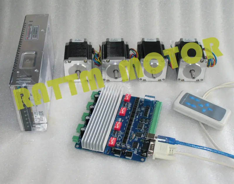 1x4 оси TB6560 USB порт USBCNC драйвер платы 4 x 23HS8430B шаговый двигатель(Длина 76 мм, 270Oz-in 3A) 1 х 24V/15A импульсный источник питания Ручной пульт дистанционного управления-1 шт. 1 х USB кабель Параллельный кабель DB9-1 шт. 1 x вентилятор, 4 шт. винт M4 Руководство пользователя на английском и китайском языках для 4 оси драйвер платы будет отправить по электронной почте