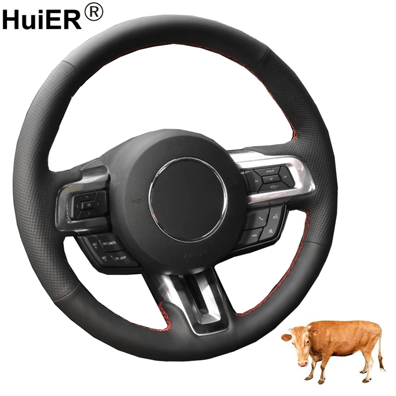 Верхний слой из коровьей кожи чехол для руляFord Mustang 2015 2016 2017 2018 2019 2020 / Mustang GT GT350R 2015 2016 2017 2018 2019 2020.
