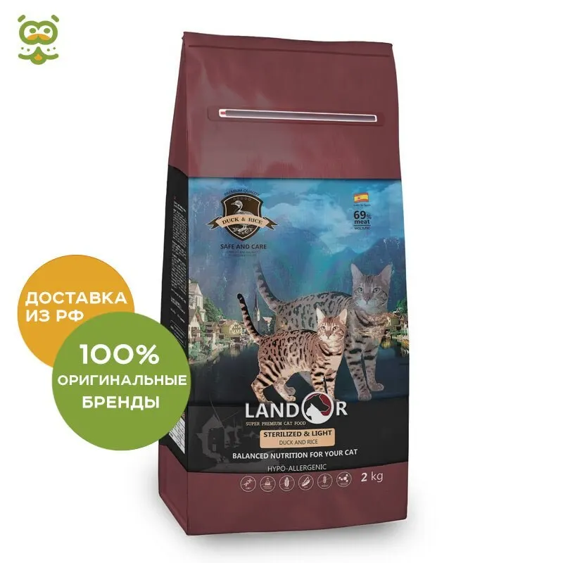Основная проблема организма стерилизованных домашних животных - это увеличение веса, и кошки не исключение. Корм LANDOR STERILIZED & LIGHT for a CAT разработан специально для стерилизованных кошек. Набор химических элементов, содержащихся в нем, идеально подойдет для пищеварительной системы домашних питомцев. Мясо утки, главный ингредиент которого по своему составу содержит оптимальное количество витаминов и белков, укрепит иммунитет, гарантирует набор всех необходимых химических веществ в рационе питания. Высокое содержание L-карнитина обеспечит стабильный процесс пищеварения, что не даст вашему любимцу набрать избыточный вес, одновременно стимулирует рост мышц и синтез белков в организме.