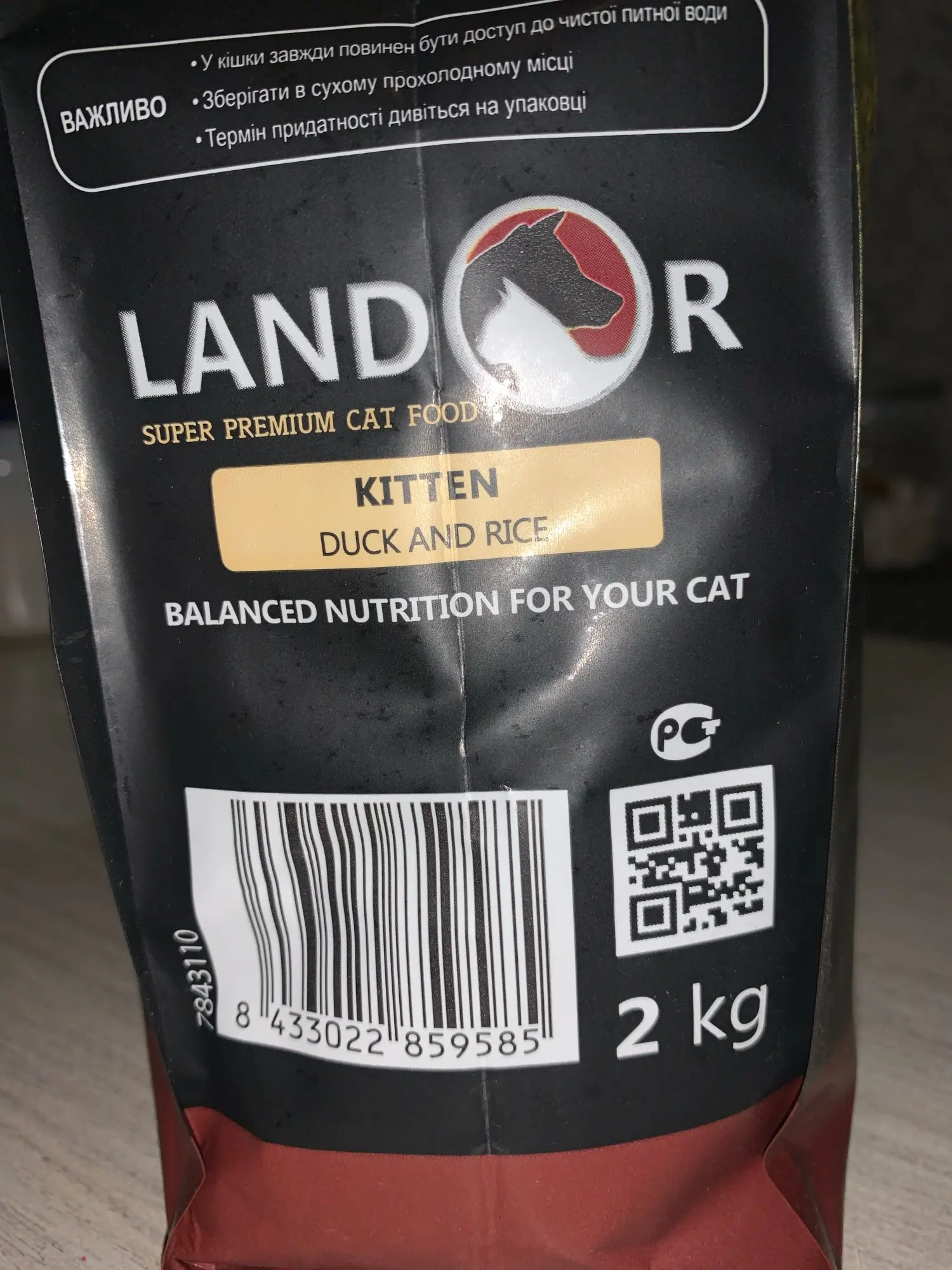 Landor Kitten сухой корм для котят, Утка,рис, 2 кг.