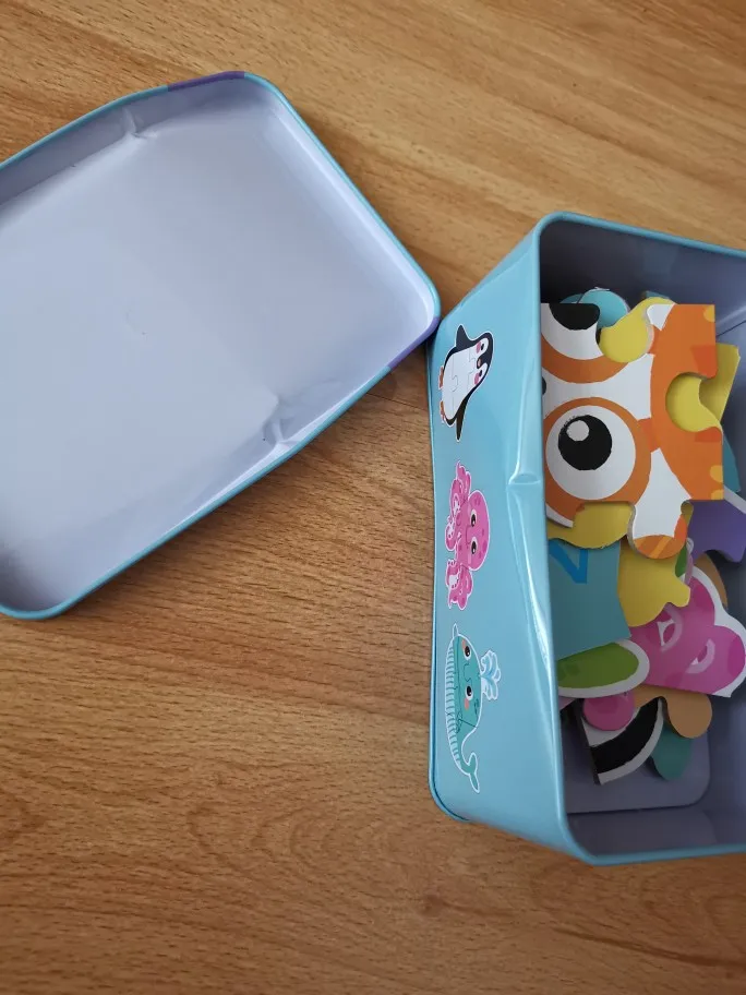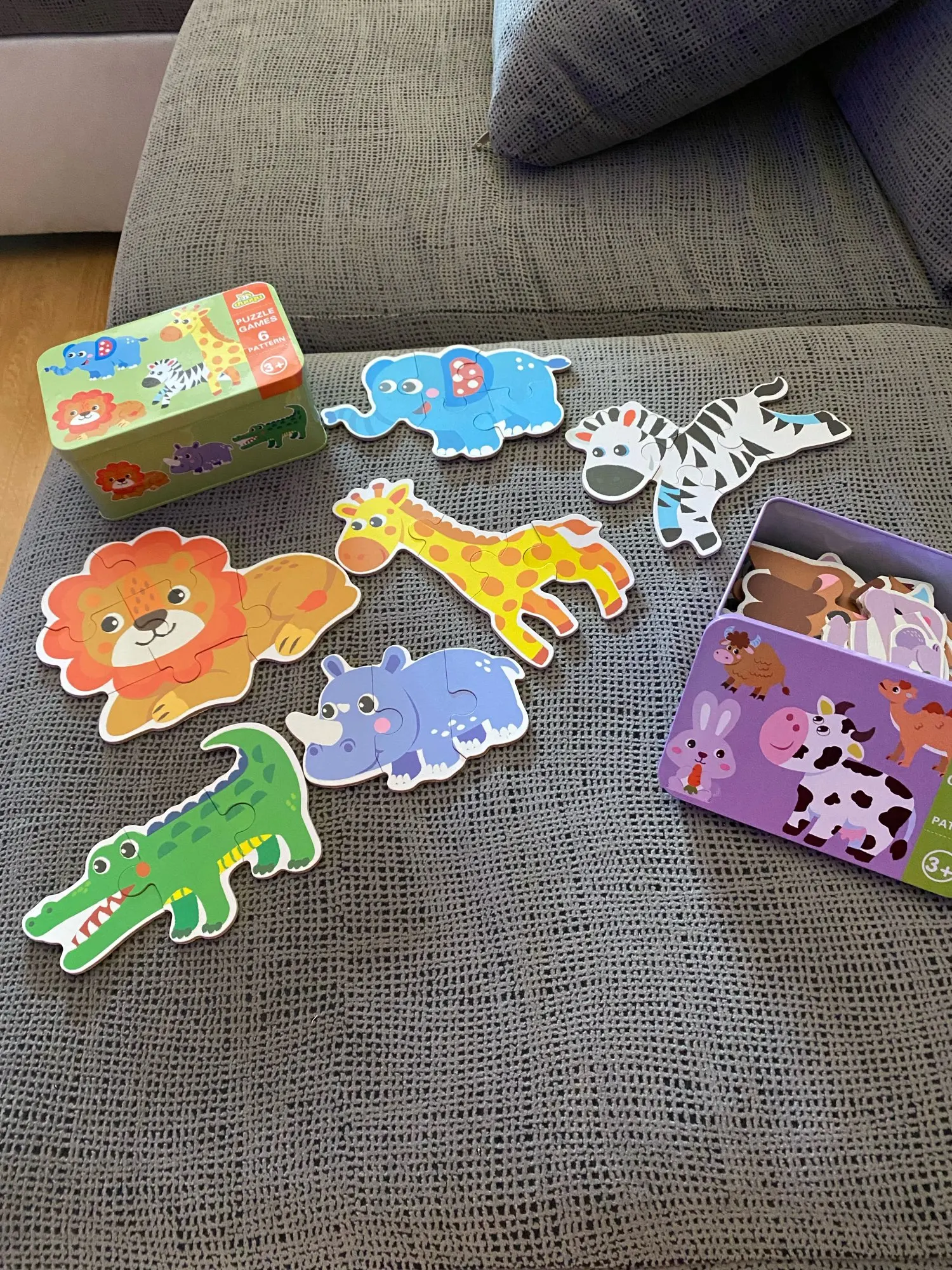 Очень крутые, толстые картонные головоломки и металлическая коробка, которая очень хорошо подходит для хранения деталей. Это третий, который я прошу о разных моделях, и так как они тематические, которые вам нравятся малышам, мы смогли иметь концентрационные мыши, установив их. Быстрая доставка (около 12 дней)