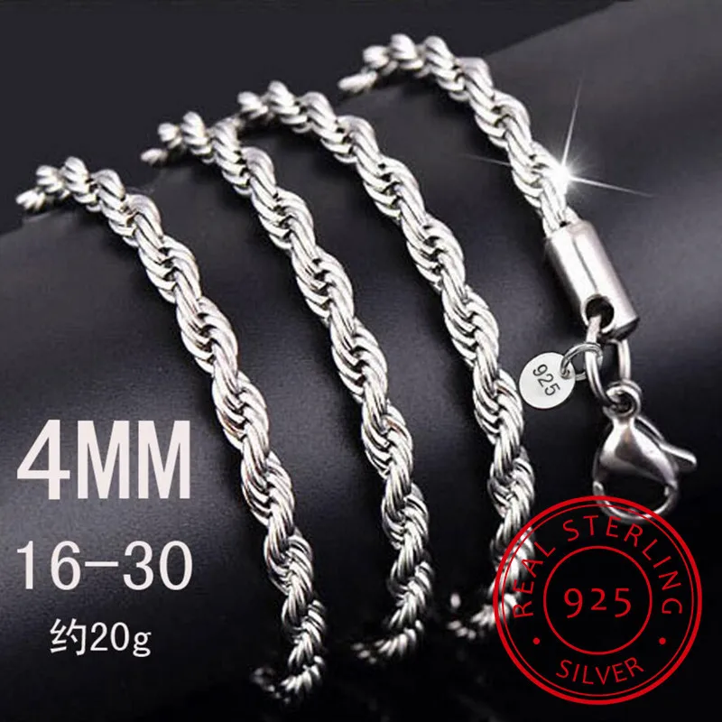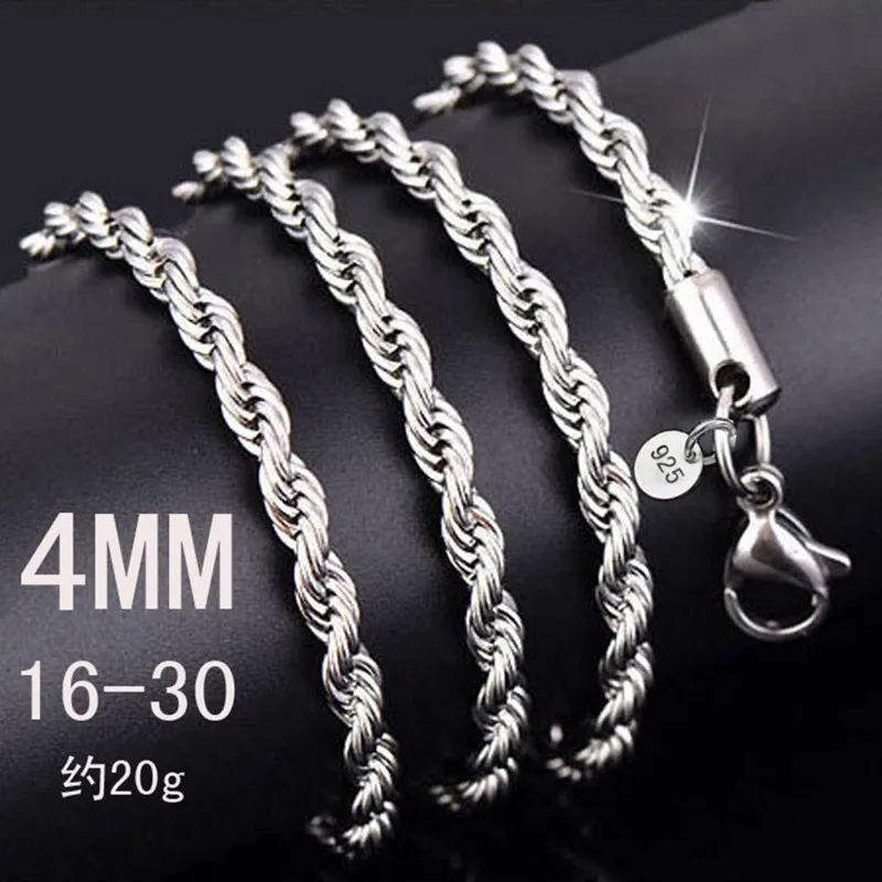 Ожерелье из серебра 925 пробы с подвеской, 4 мм