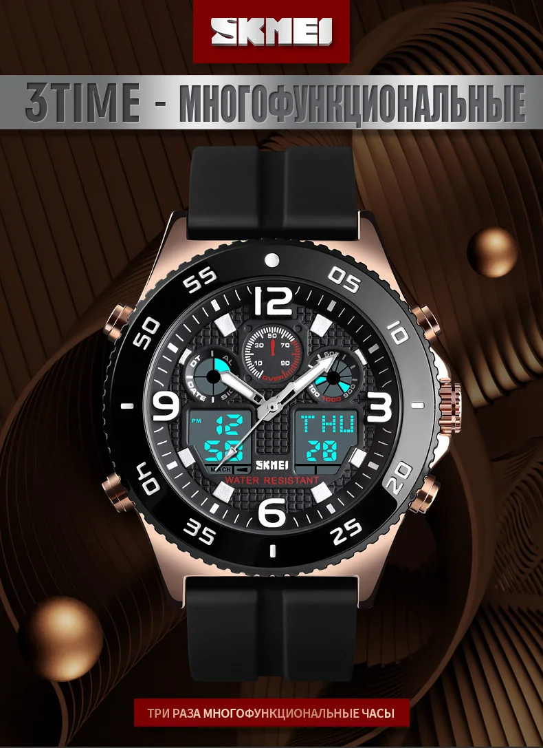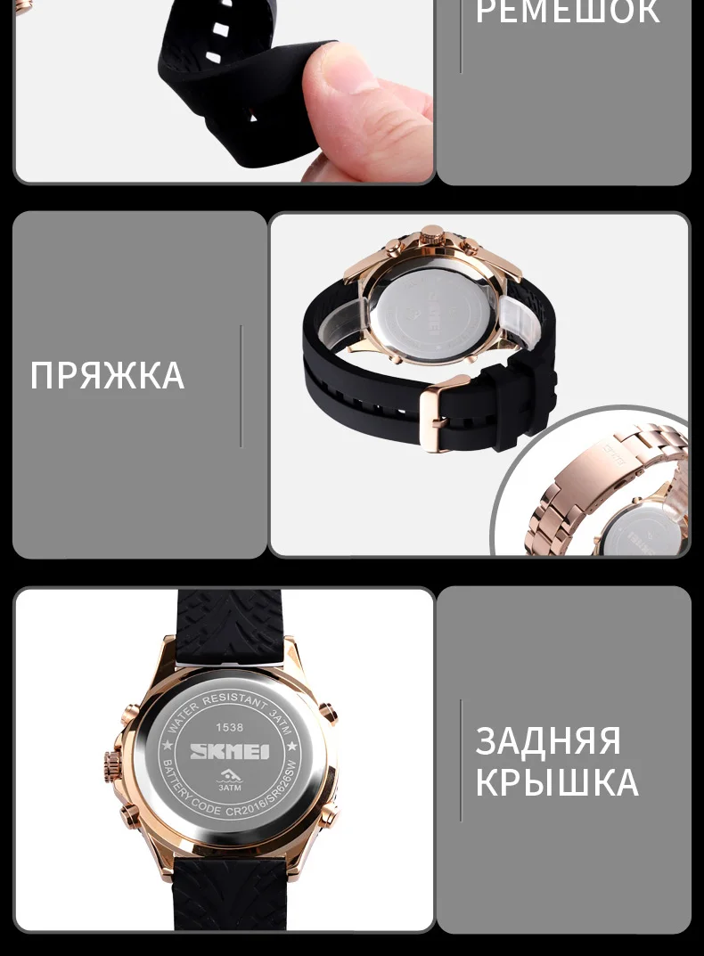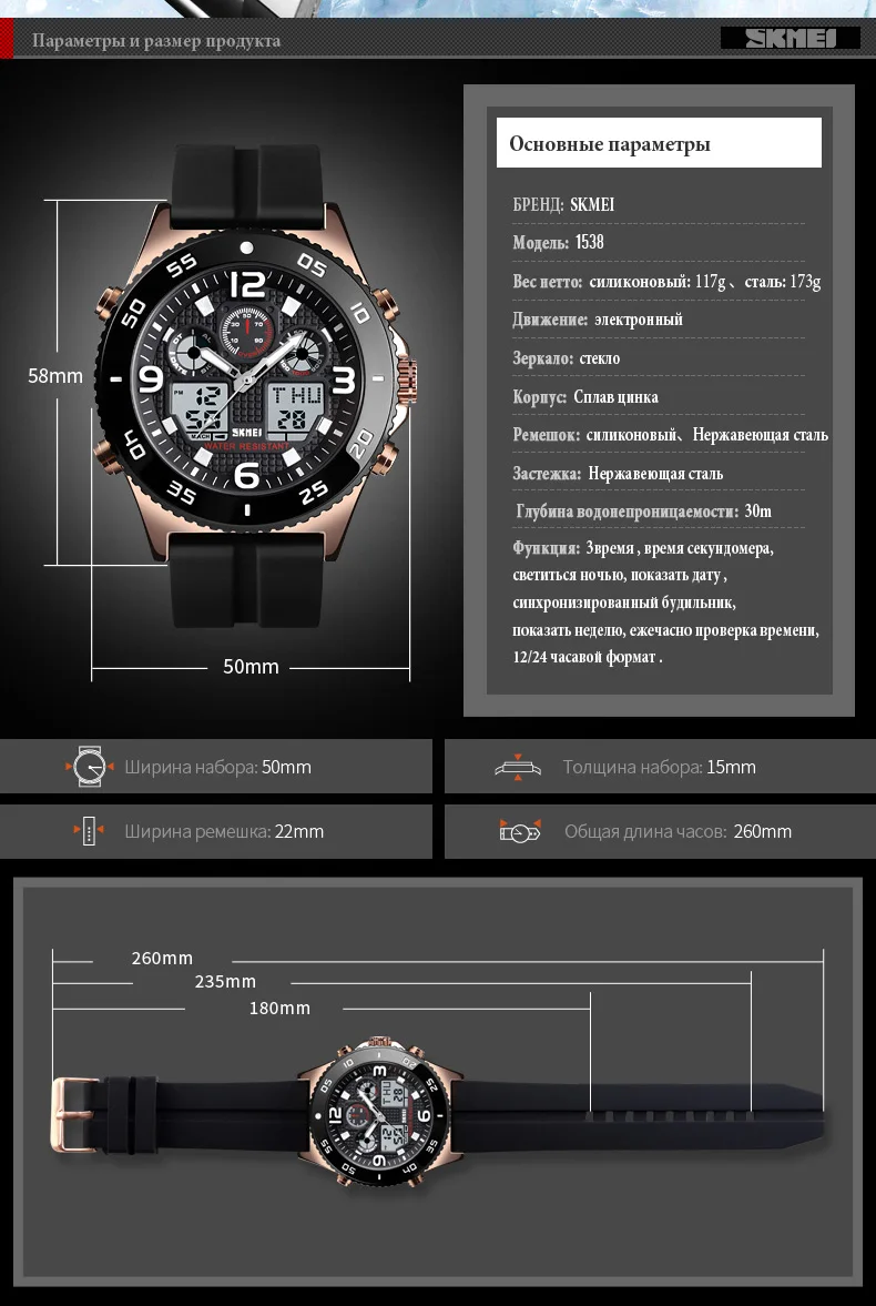 Часы SKMEI мужские, цифровые, 3 часа, водонепроницаемые, 1538
