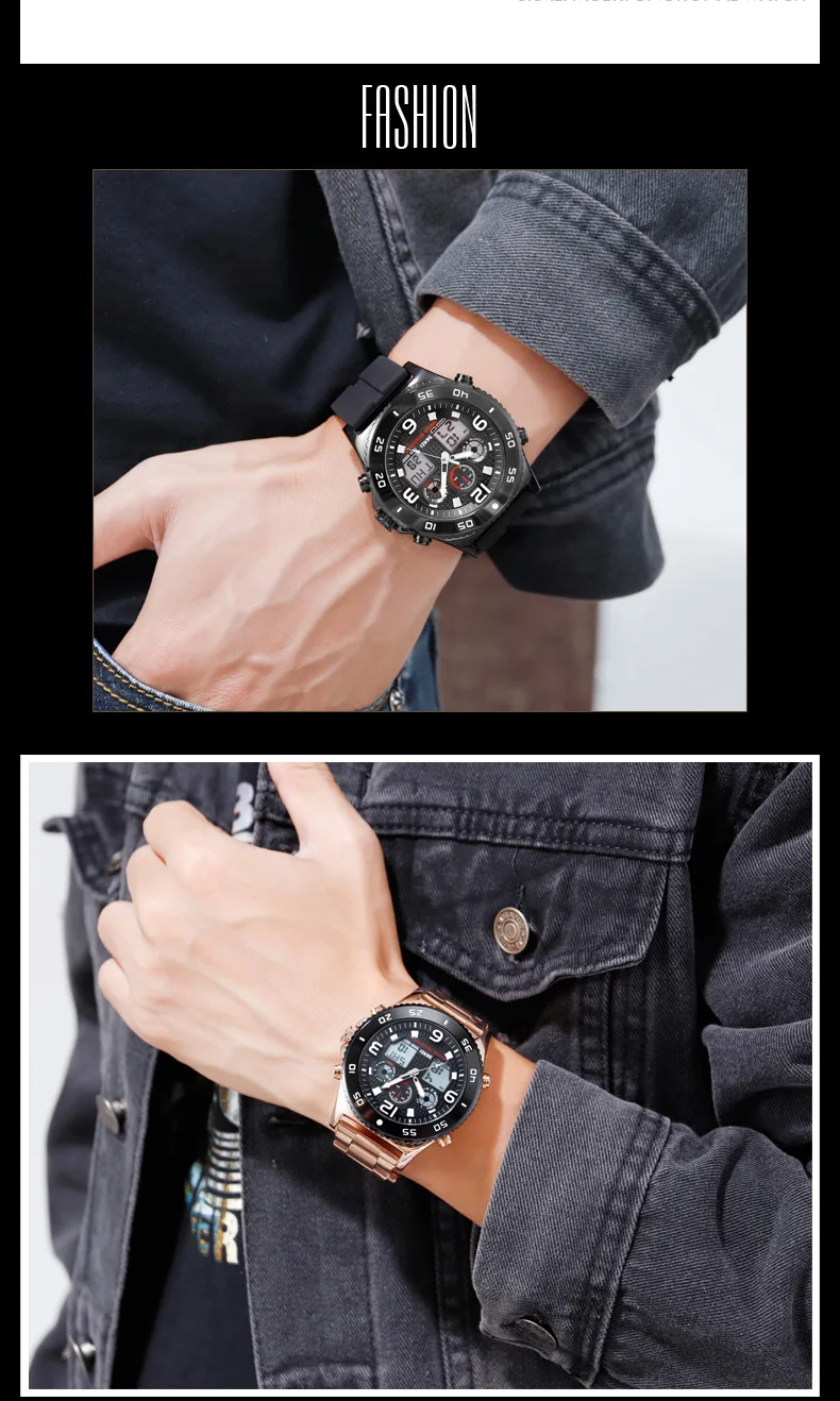 Роскошные мужские кварцевые часы с двойным дисплеем, спортивные час...
