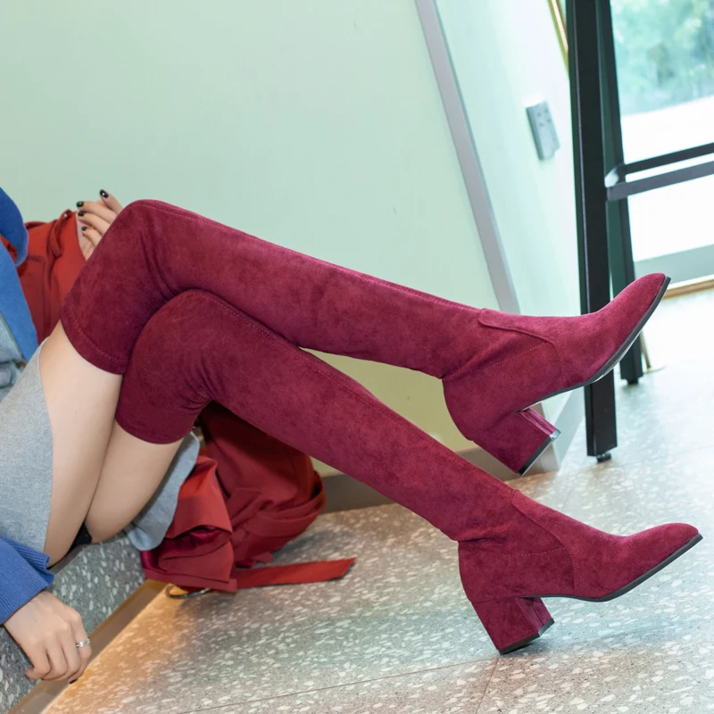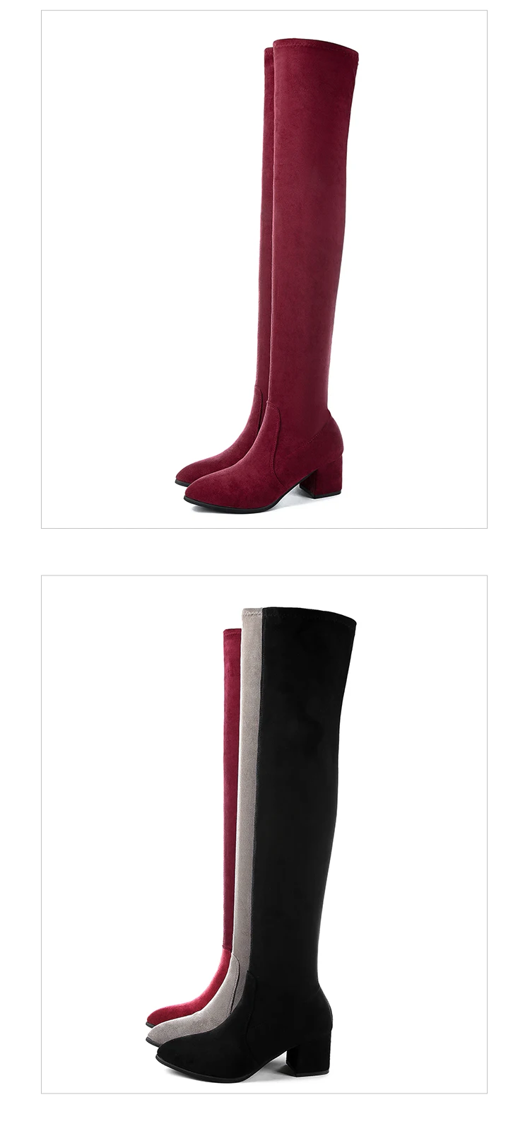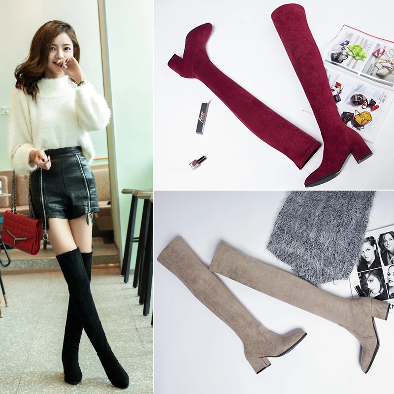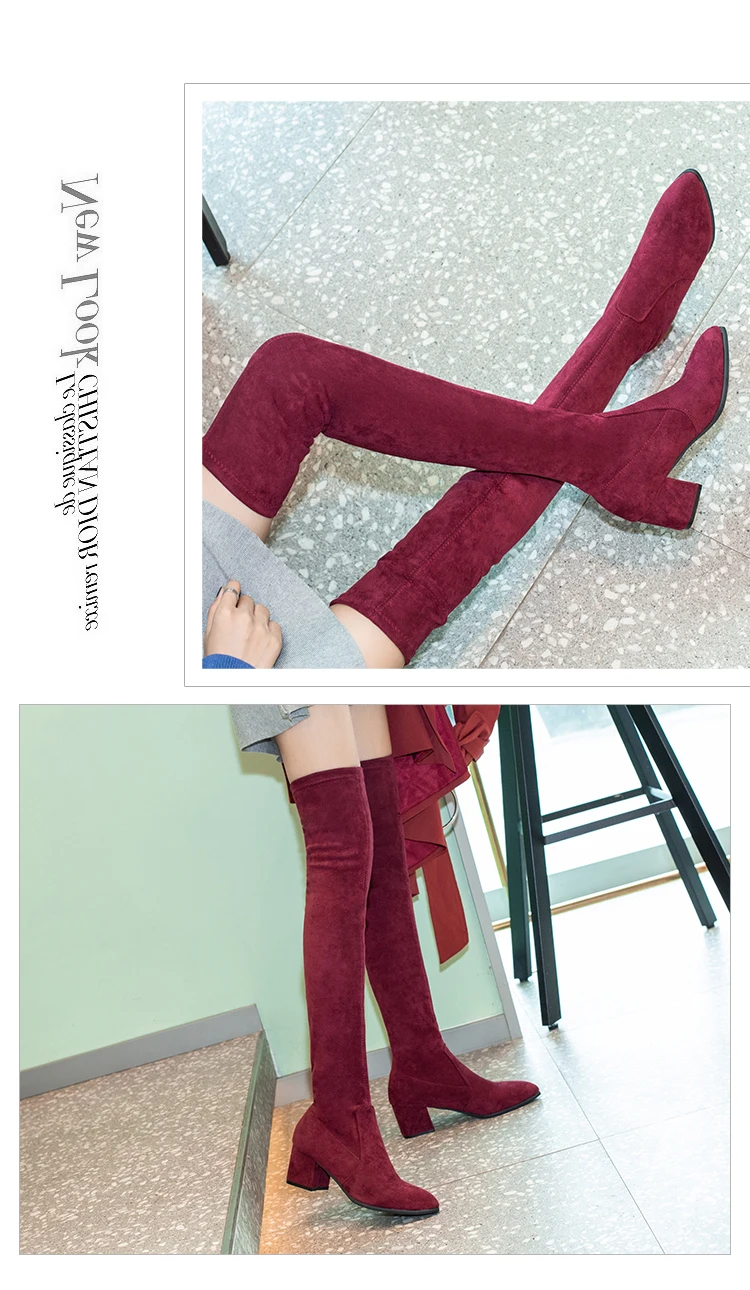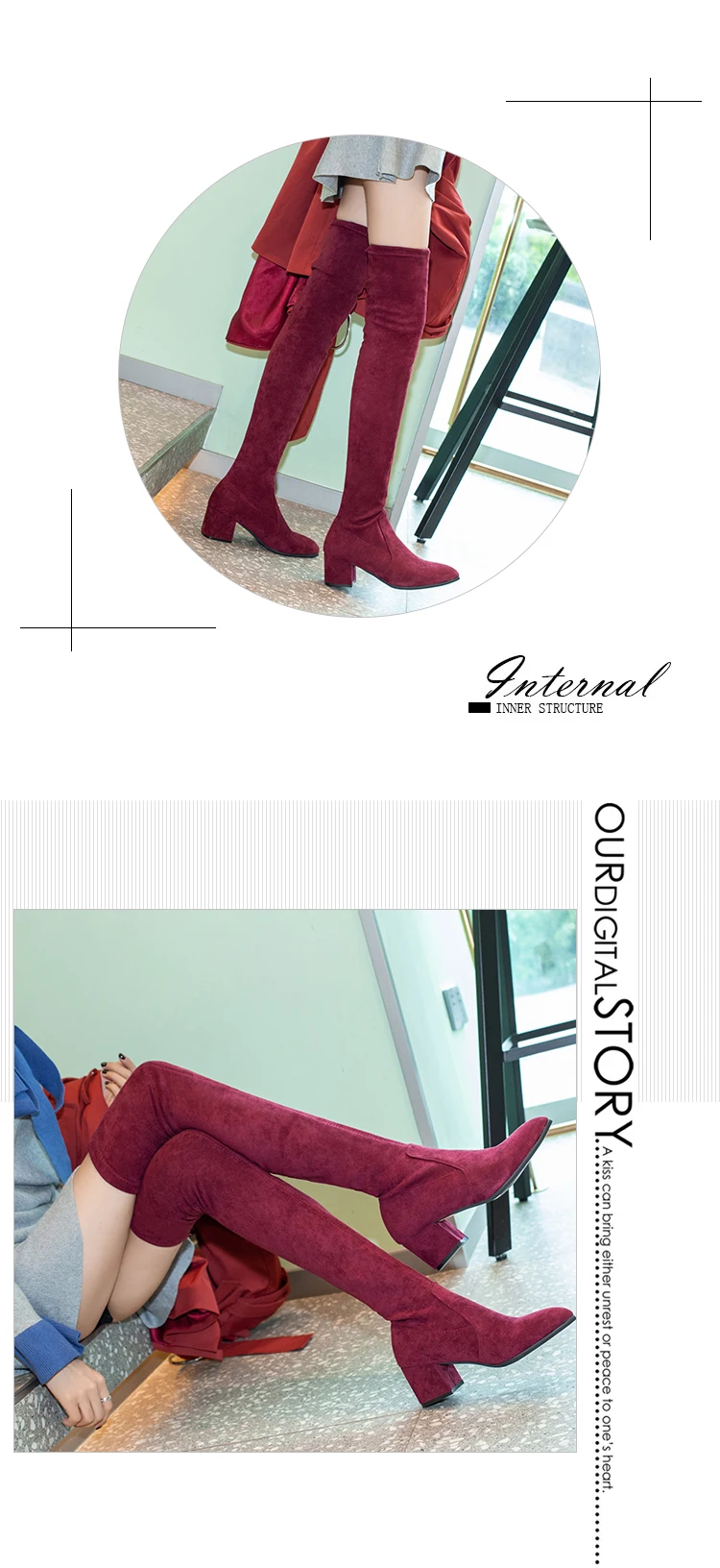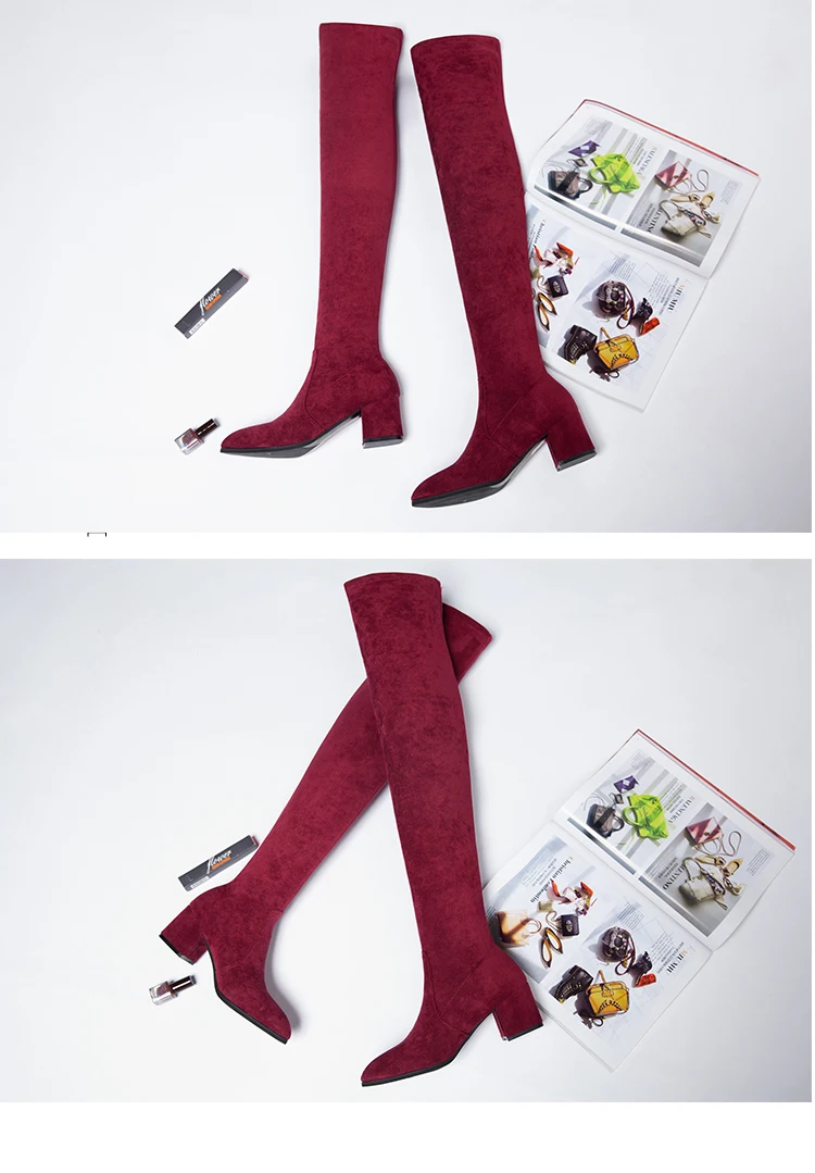 Модные высокие сапоги до бедра, женские зимние сапоги, новые сапоги выше колена, женская обувь, привлекательные сапоги на высоком каблуке, красные, черные сапоги с теплым мехом