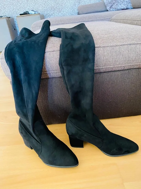 Сапоги выглядят хорошо, на этом, пожалуй, все достоинства данного продукта заканчиваются. На ногу средней полноты садятся без каких либо усилий, материал неизвестного происхождения, двже на флок не особо похож. Если ходить в них долго, то болезненные ощущения обеспечены, так как картонка вставленная в районе стопы давит нещадно. Проходила в них день, неудобно, при ходьбе давление на стопу. В общем, знала бы все это - не стала бы брать. Продавец очень быстро отправил и пришло быть, к качеству обслуживания претензий нет. На фото пятно неизвестного происхождения.