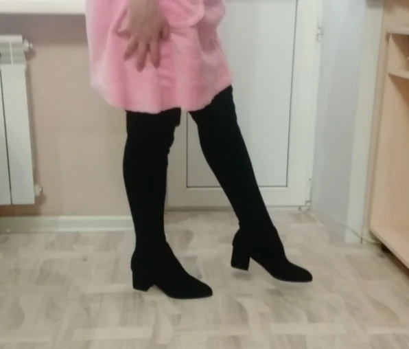 сапоги великолепные, выполнены аккуратно, на 37 размер 7,5 , нога средней полноты, очень приятная ткань на ощупь, очень удобный каблук,при ходьбе сползают с колен, думаю, может вставить вверху какие нибудь завязки, позже приложу фото