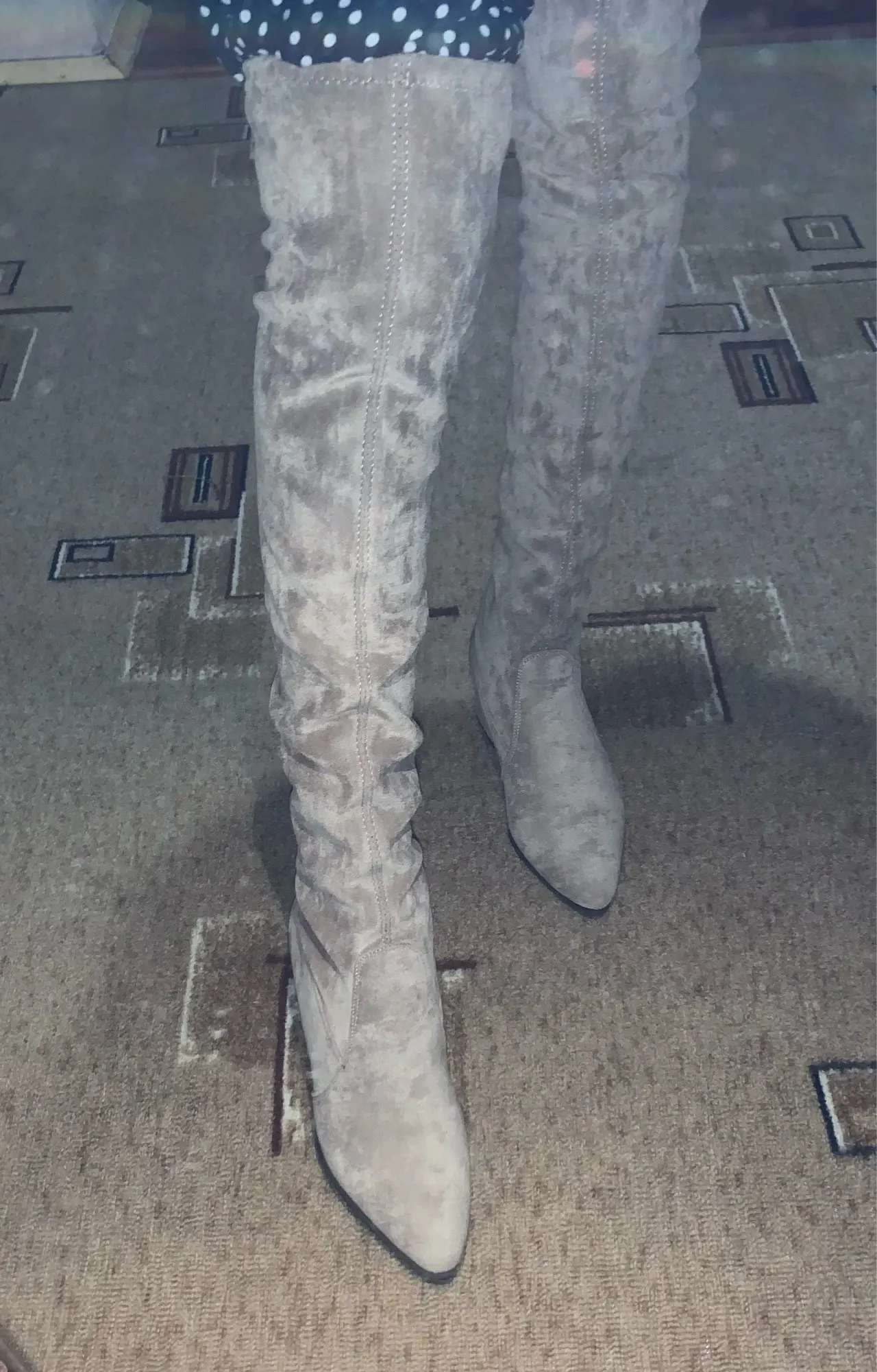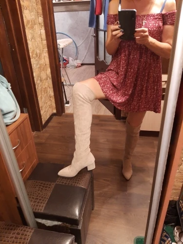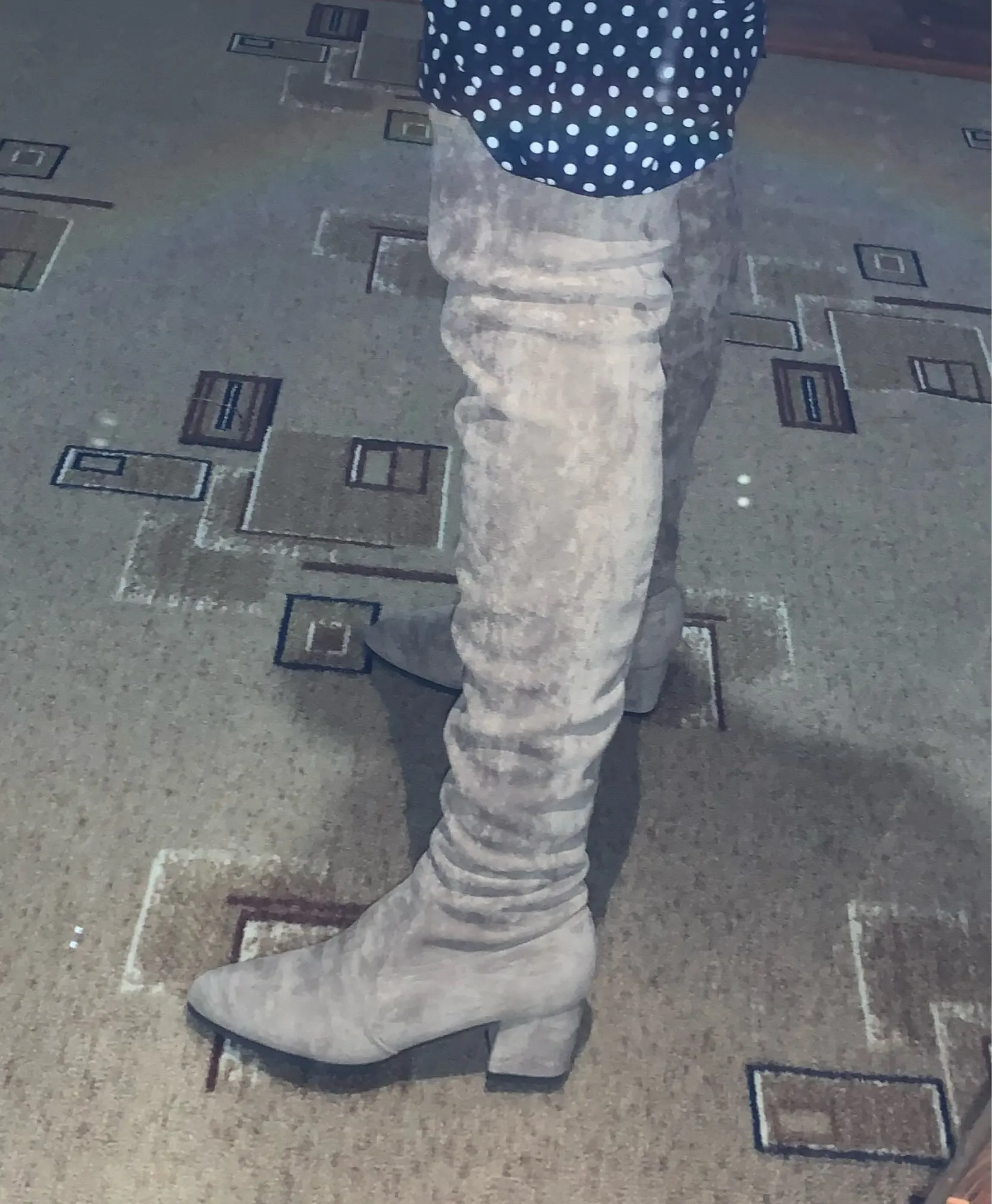 Сапожки вполне неплохие за свою цену (вместе с промокодом вышли за 1347). Цвет все -таки не серый , а бежевый , на рост 160 см голенище высокое , см на 5-6 выше колена, на очень худой и не объемной голени как у меня сидят нормально . Смотрятся недешевыми . На российский 38 размер , длину стопы 24 см взяла по размерной таблице 7,5 , сидят чуть впритык , но разносятся . Конечно они на сухую погоду и вряди долго протянут , учитывая состояние российских дорог , особенно в глубинке , но за такую низкую стоимость качество вполне себе приемлемое