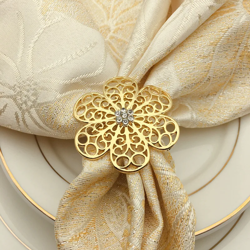 Модный держатель для свадебных банкетных салфеток Кольцо металлическое для салфетки, 12 шт., украшение для ужина, цветок из сплава, круг для салфеток
