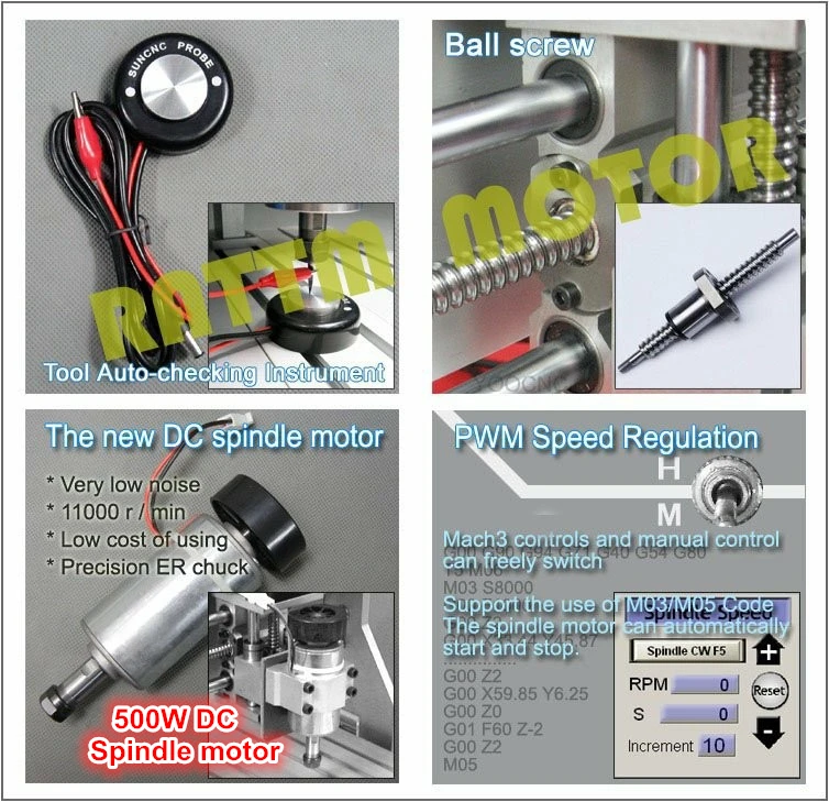 3. Новый Шпиндельный двигатель 11000 об/мин, и может выключить шпиндель с помощью mach3 и PWM управления скоростью вращения шпинделя. Mo повторно стабильное долгое время работы