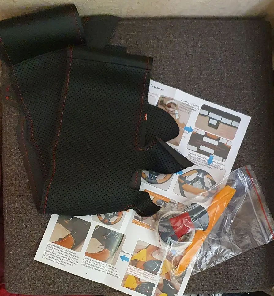 Ручное шитье чехол рулевого колеса автомобиля Обёрточная бумага чер...