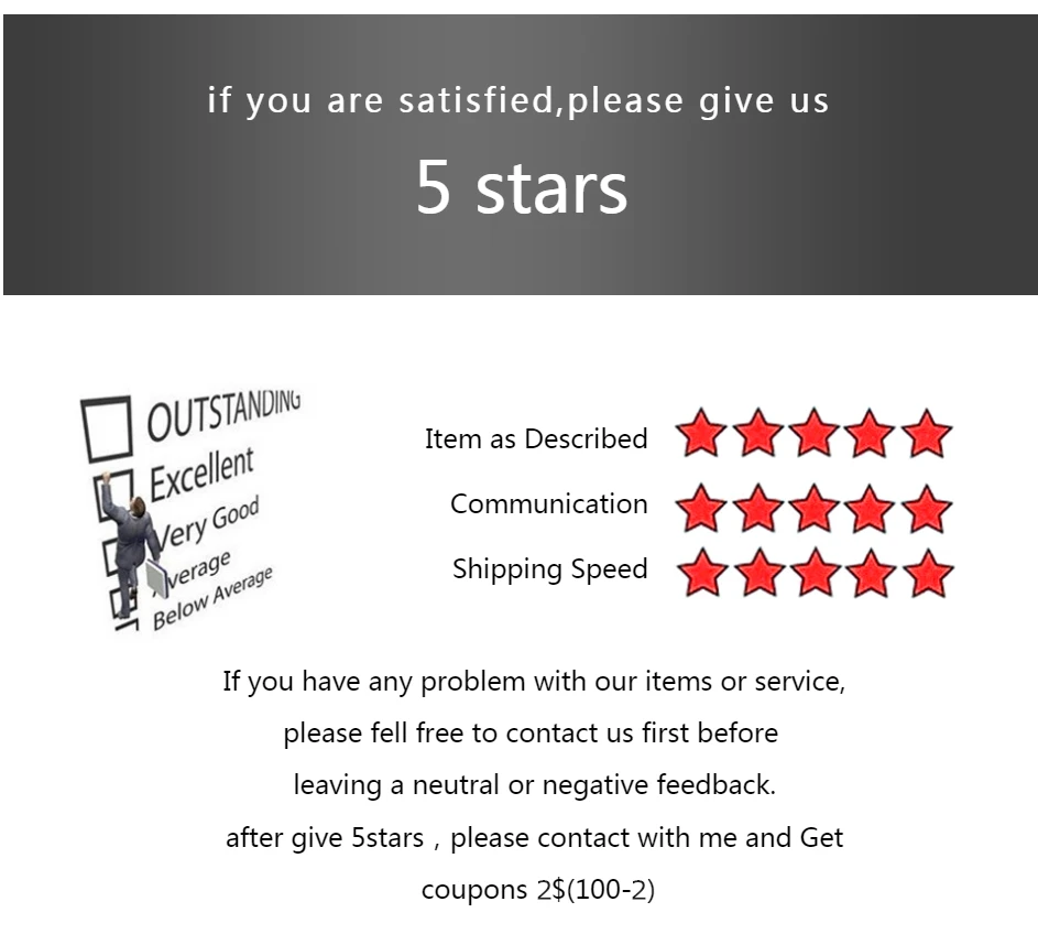 Мы ценим ваши положительные отзывы и 5 звезд, этот товар предназначен для того, чтобы получить отзывы только без какой-либо прибыли