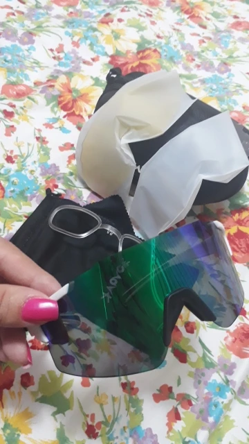Солнцезащитные очки точно такие же, как на картинке, резина, которая подходит для de nose, очень жесткая и немного болит переносицей (оставляет большое углубление на носу, после каждой езды), даже несмотря на все корректировки, сделанные на резине (он может открываться и закрываться так, как вы хотите). Но положительная сторона в том, что очки имеют большие линзы, вы можете иметь гоночный позиционирование, с вашей головой вниз, что вы все еще можете увидеть путь впереди вас, через линзы. Они также отлично держатся на месте, и несколько цветов линз очень приветствуются. Доставляется заранее. В целом я доволен.