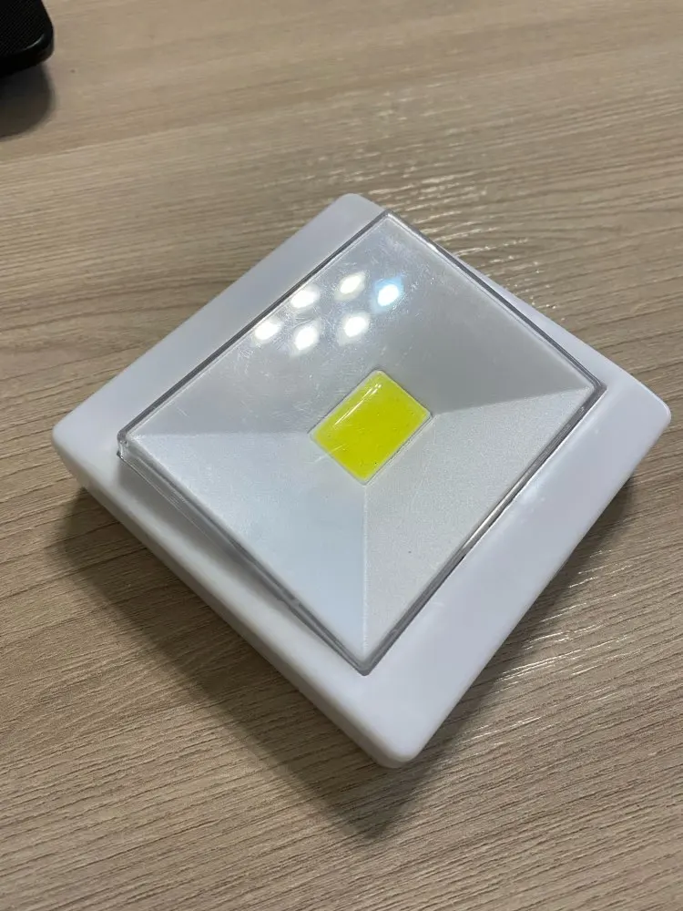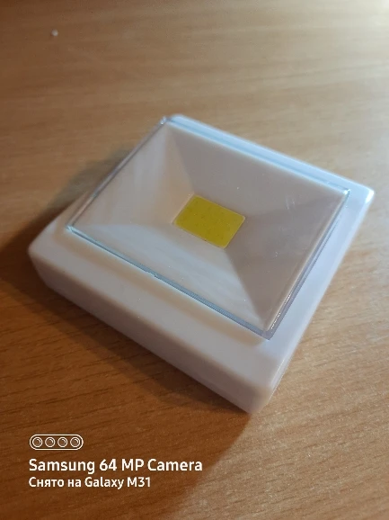 Хорошо светит. Батарейки кпопки нужны. С фикспрайса подошли, в наборе которые. Все как в описании. Как на картинке светильник. Только магниты не держут. Но там есть на гвоздик крепление. И липучка.
