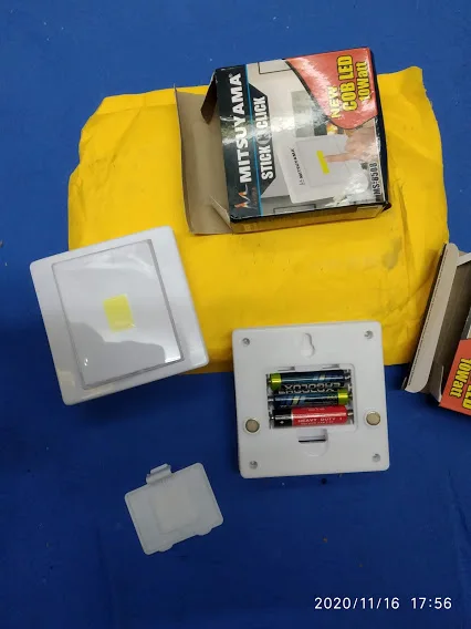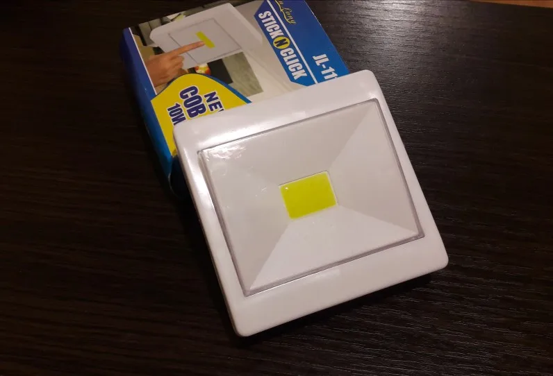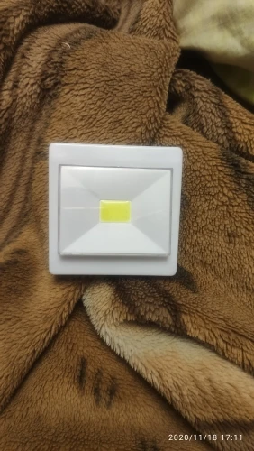 заказал сразу 2 светильника, пришли целые не разбитые, вставил батарейки, проверил. все работает отлично, светит ярко. хороший товар, рекомендую. покупал в шкаф для примера сфотографировал, как было темно и как стало. теперь не надо ползать с фонариком от телефона. приклеил на липучку, которая сразу идет на светильнике. все супер