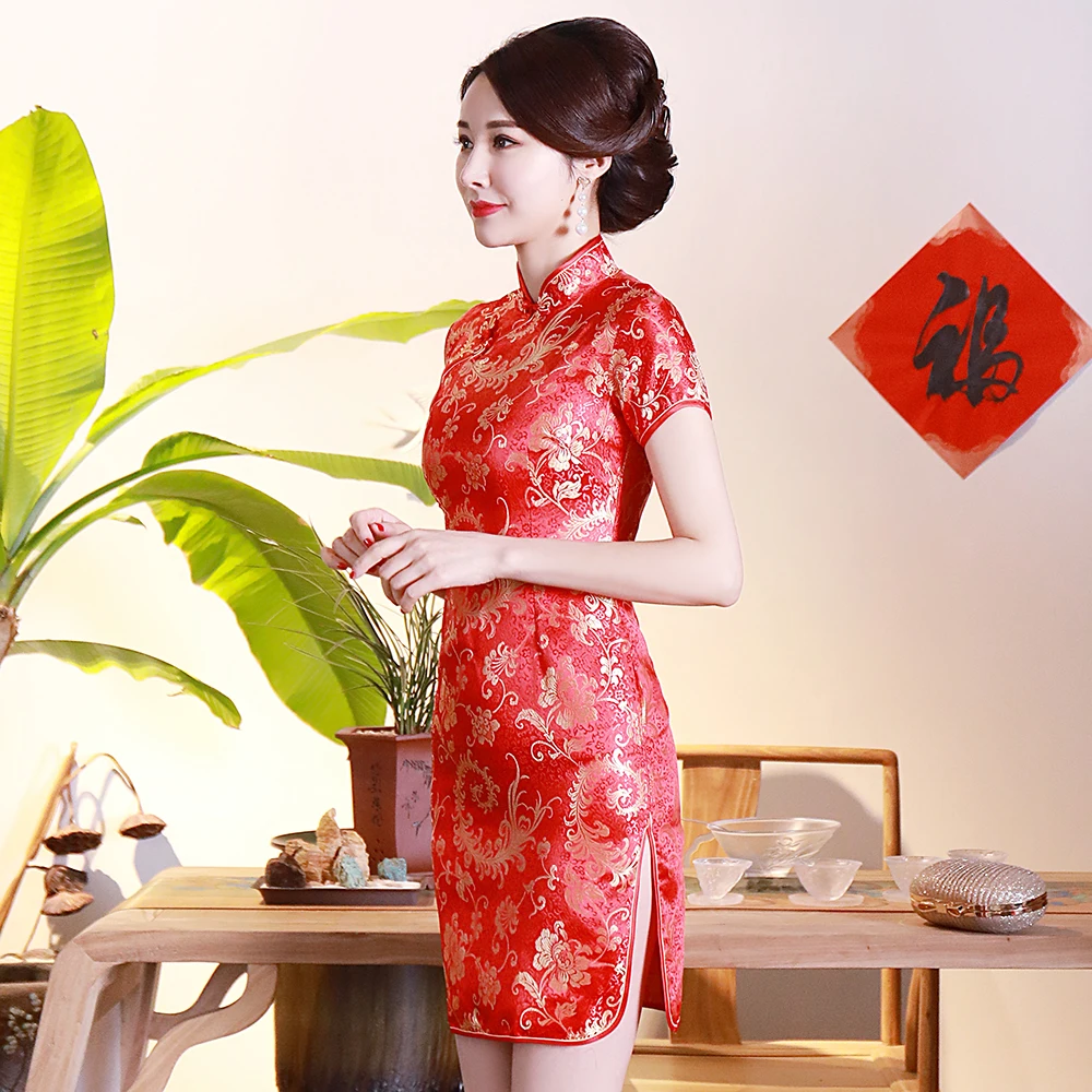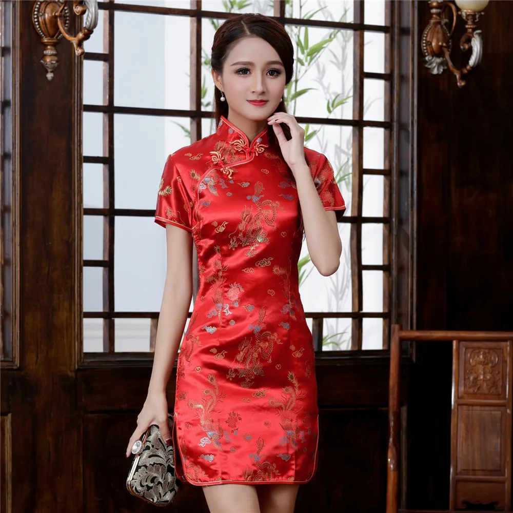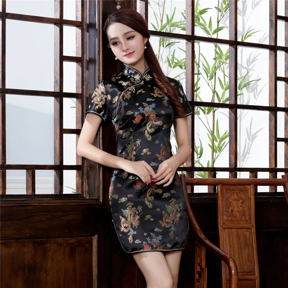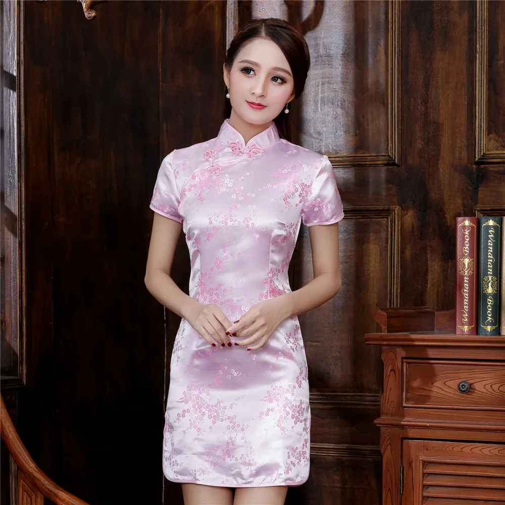 Классическое Восточное китайское платье для женщин, с цветочным принтом, винтажные платья-Ципао, с воротником-стойкой, короткое Ципао, сценическая одежда для шоу