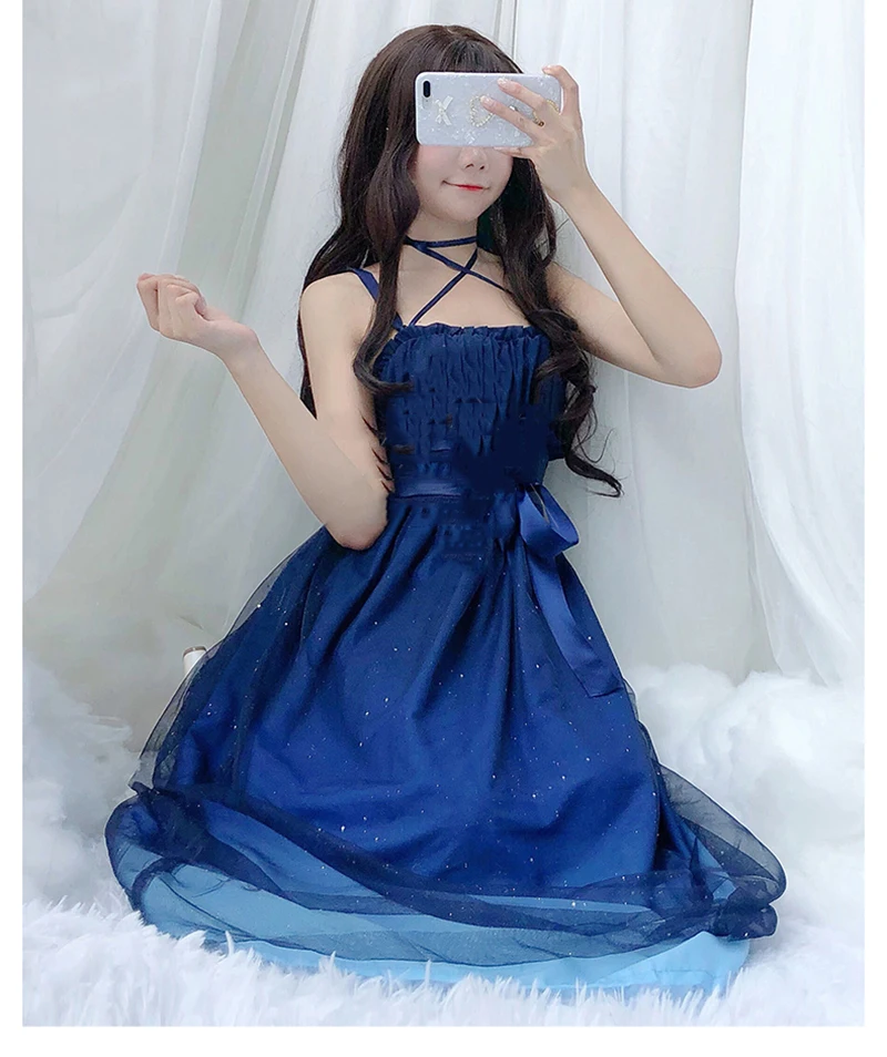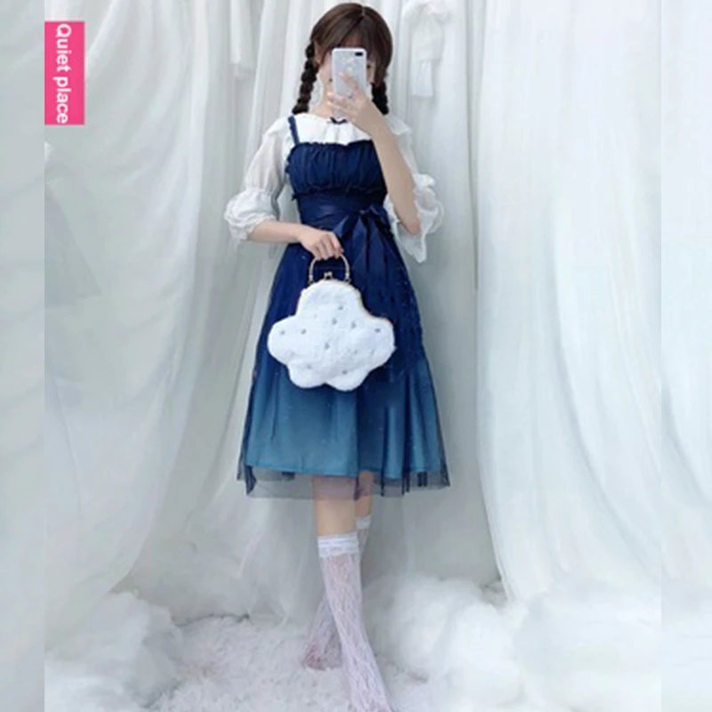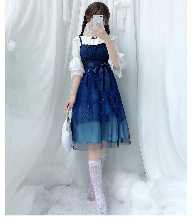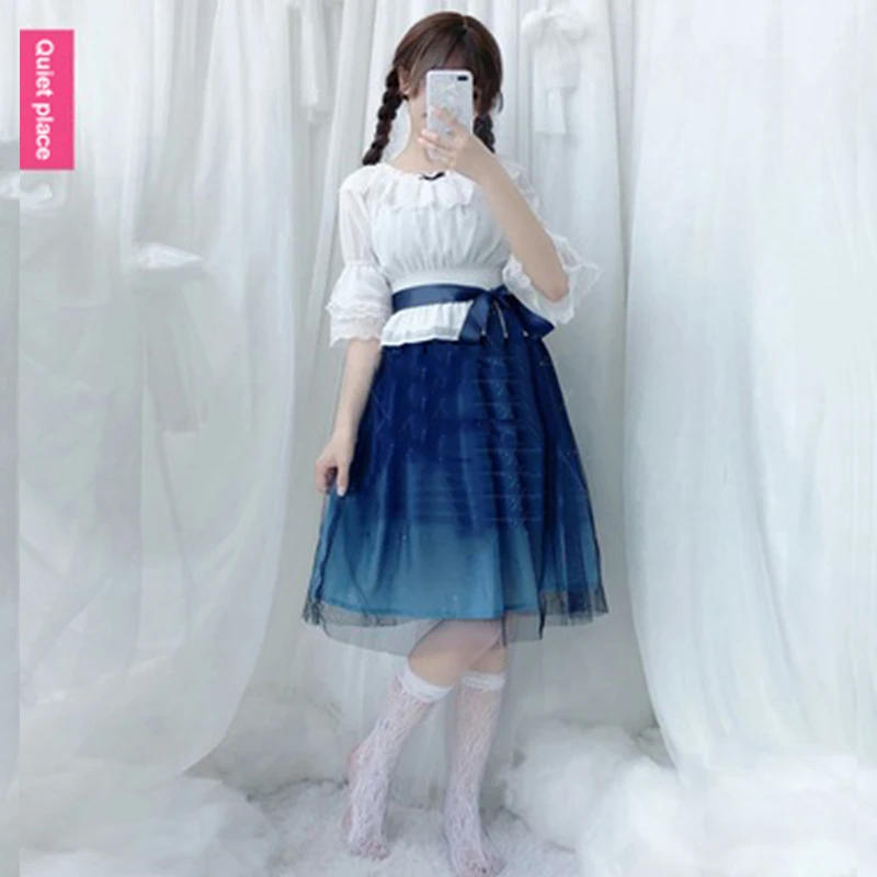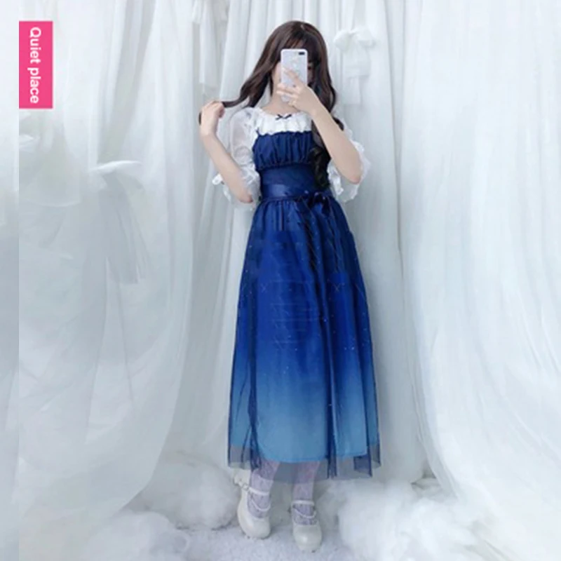 1 шт. японское мягкое платье с длинным рукавом для сестры с перекрестным шлейфом шестиконечная звезда газовое платье Лолита с коротким рукавом японский косплей костюм