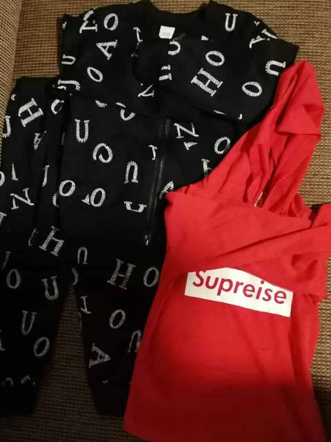 dobre jakościowo, bluza, spodenki, bluzka. ładne i dość duże jak na raozmiar 100 ale dobre.