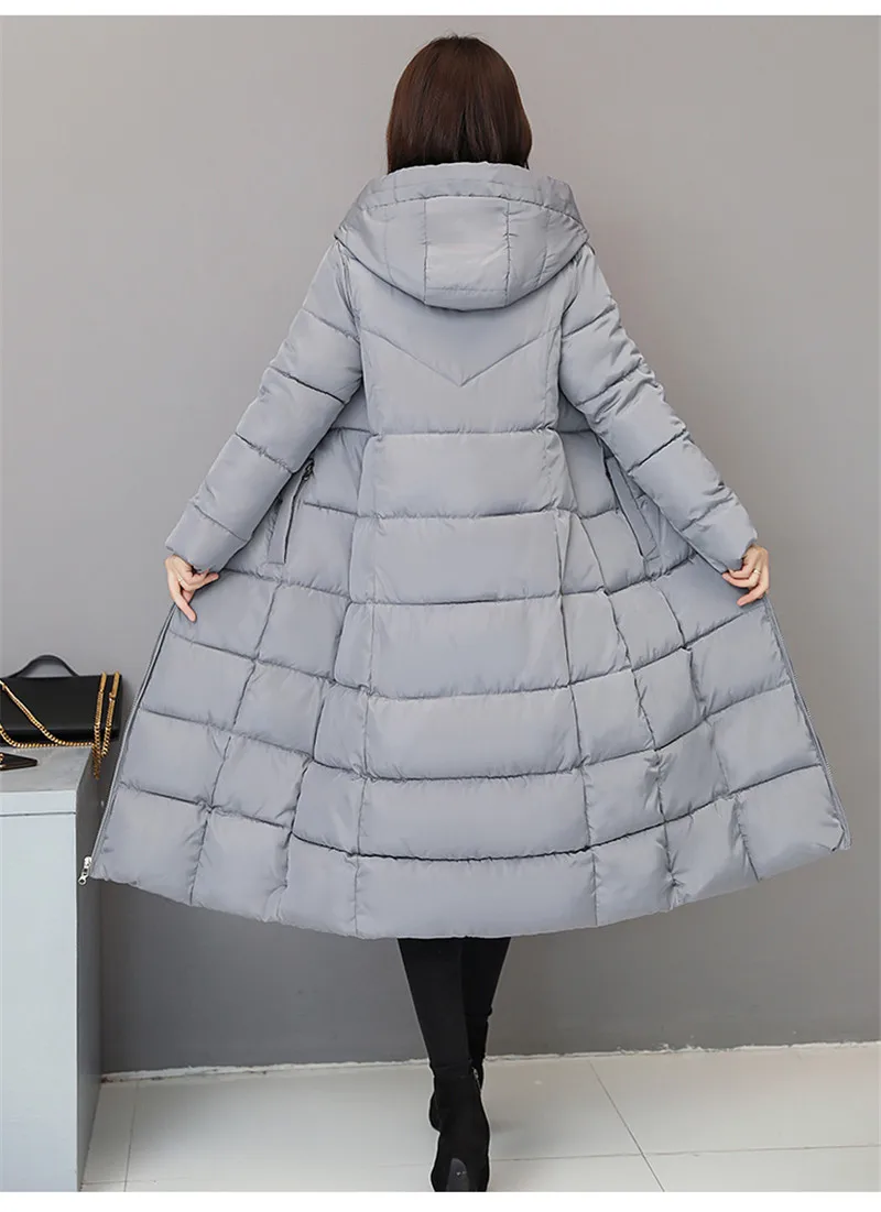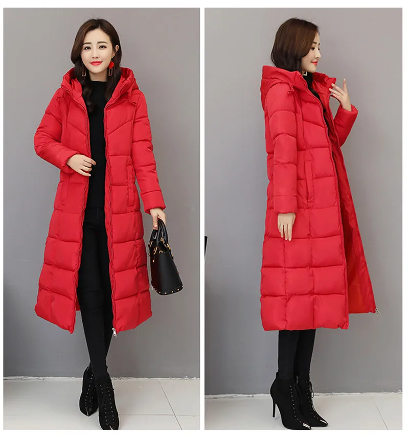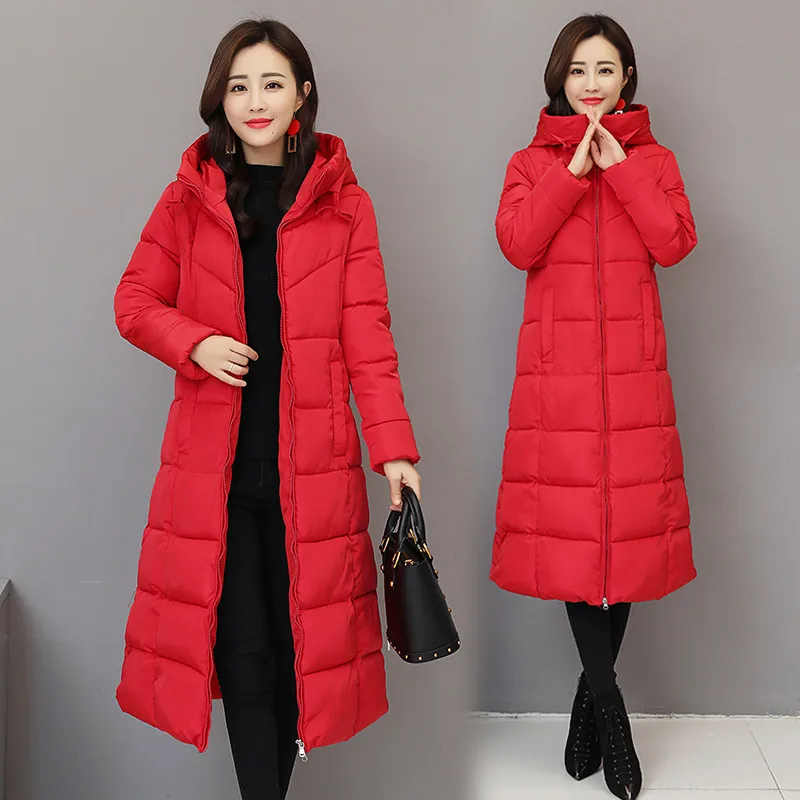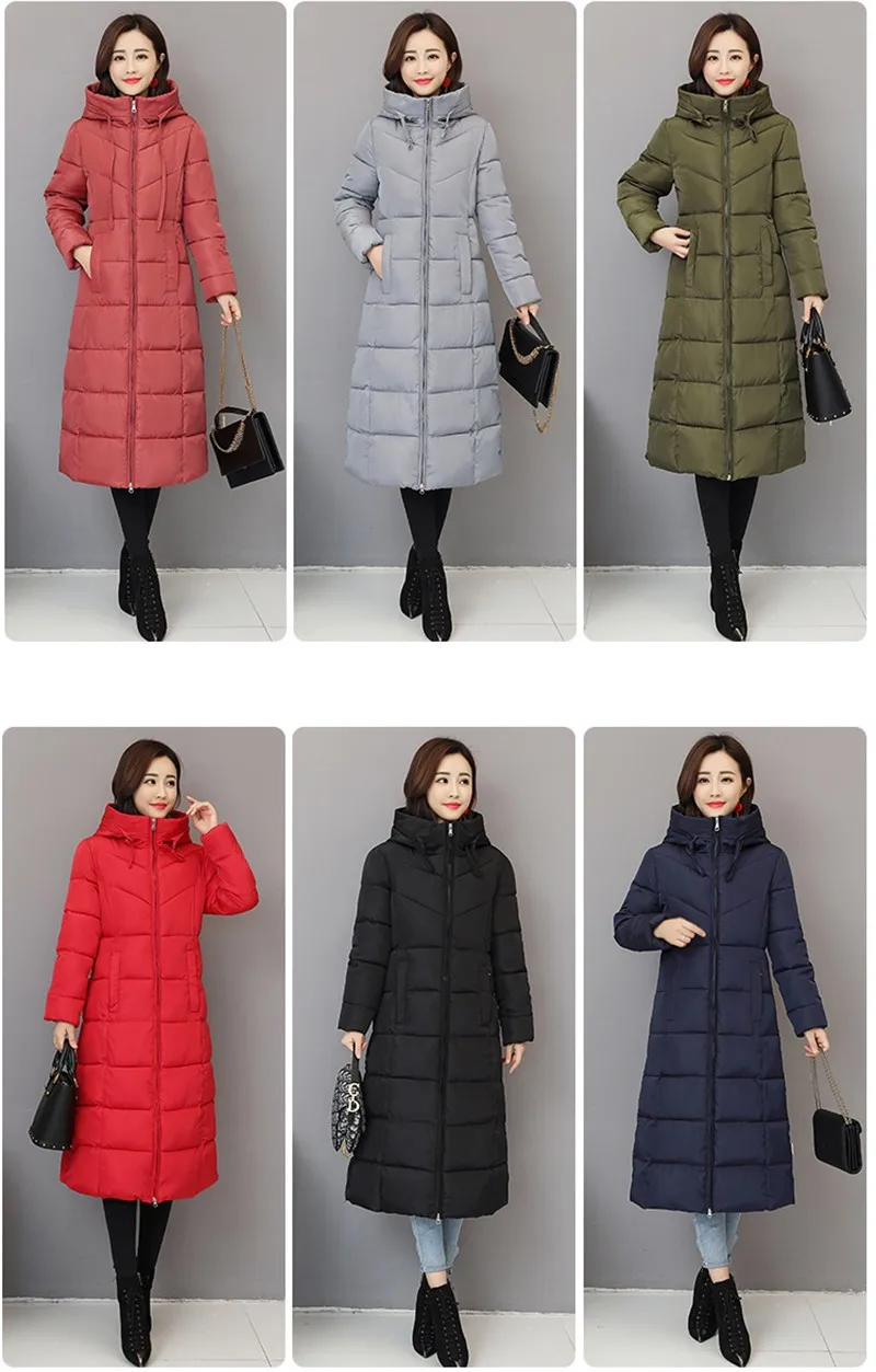 2019 зимняя куртка с женское теплое пальто с капюшоном хлопковой подкладкой, Женская Длинная утепленная парка, куртка большого размера 6XL 1005
