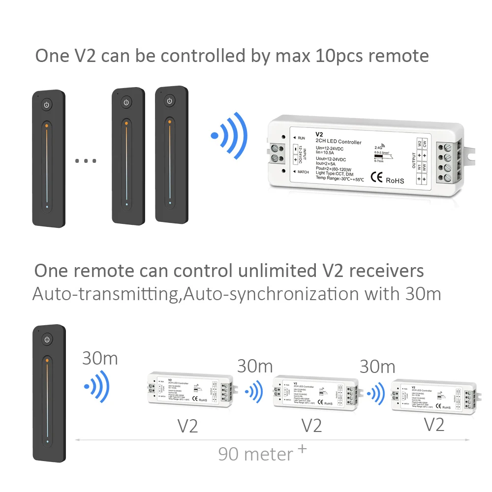 2 канала постоянного напряжения/сенсорный Цвет скольжения/шаг-меньше затемнения/беспроводной пульт дистанционного управления 30 м расстояние