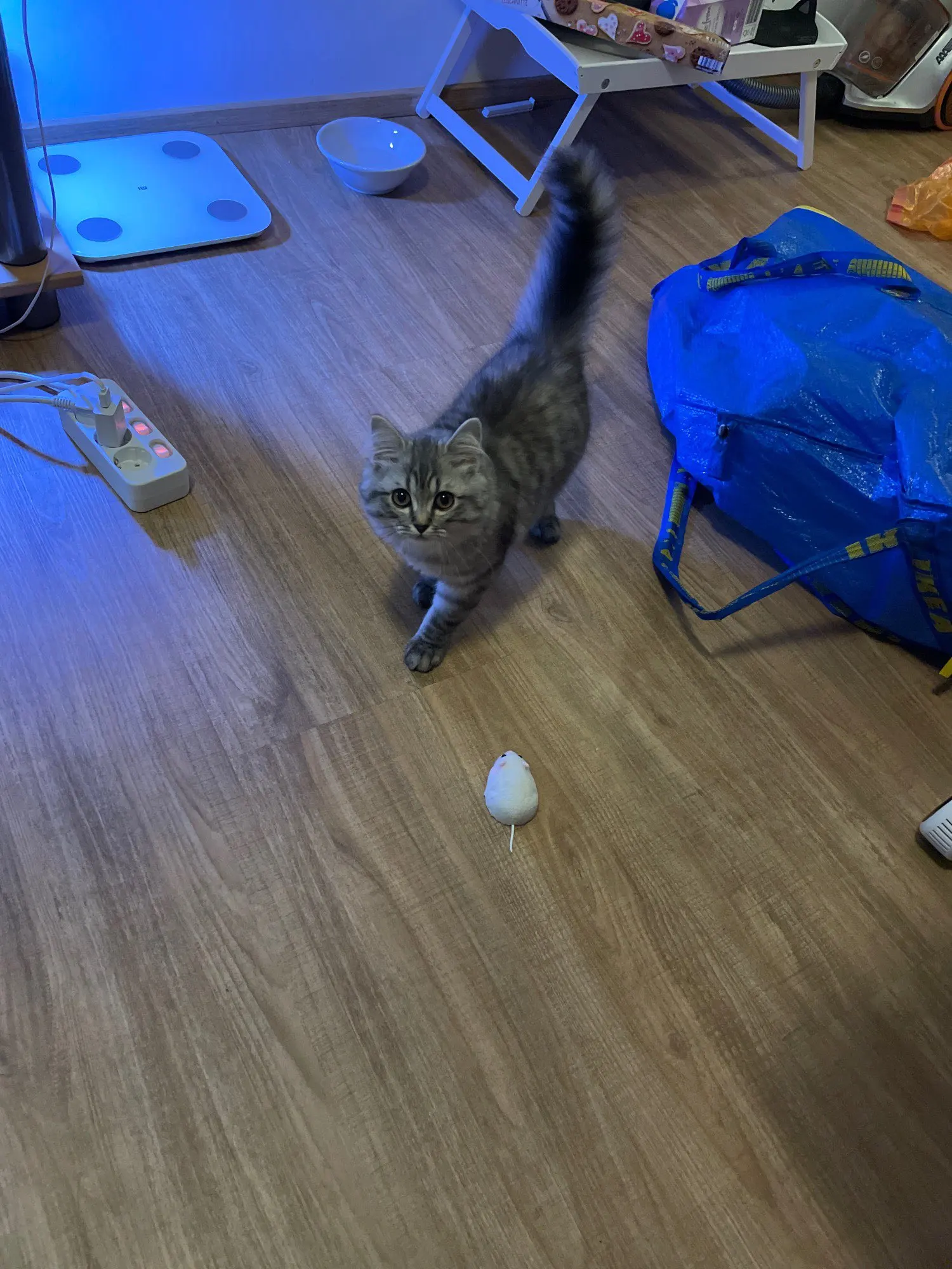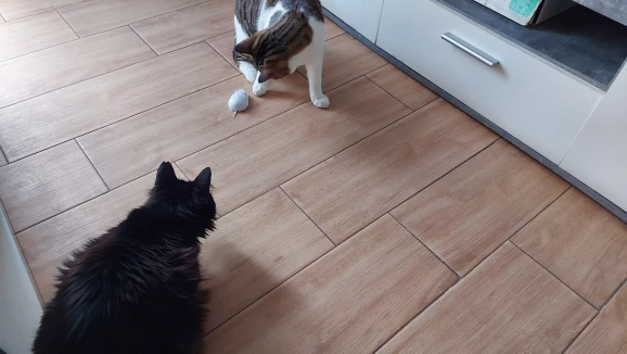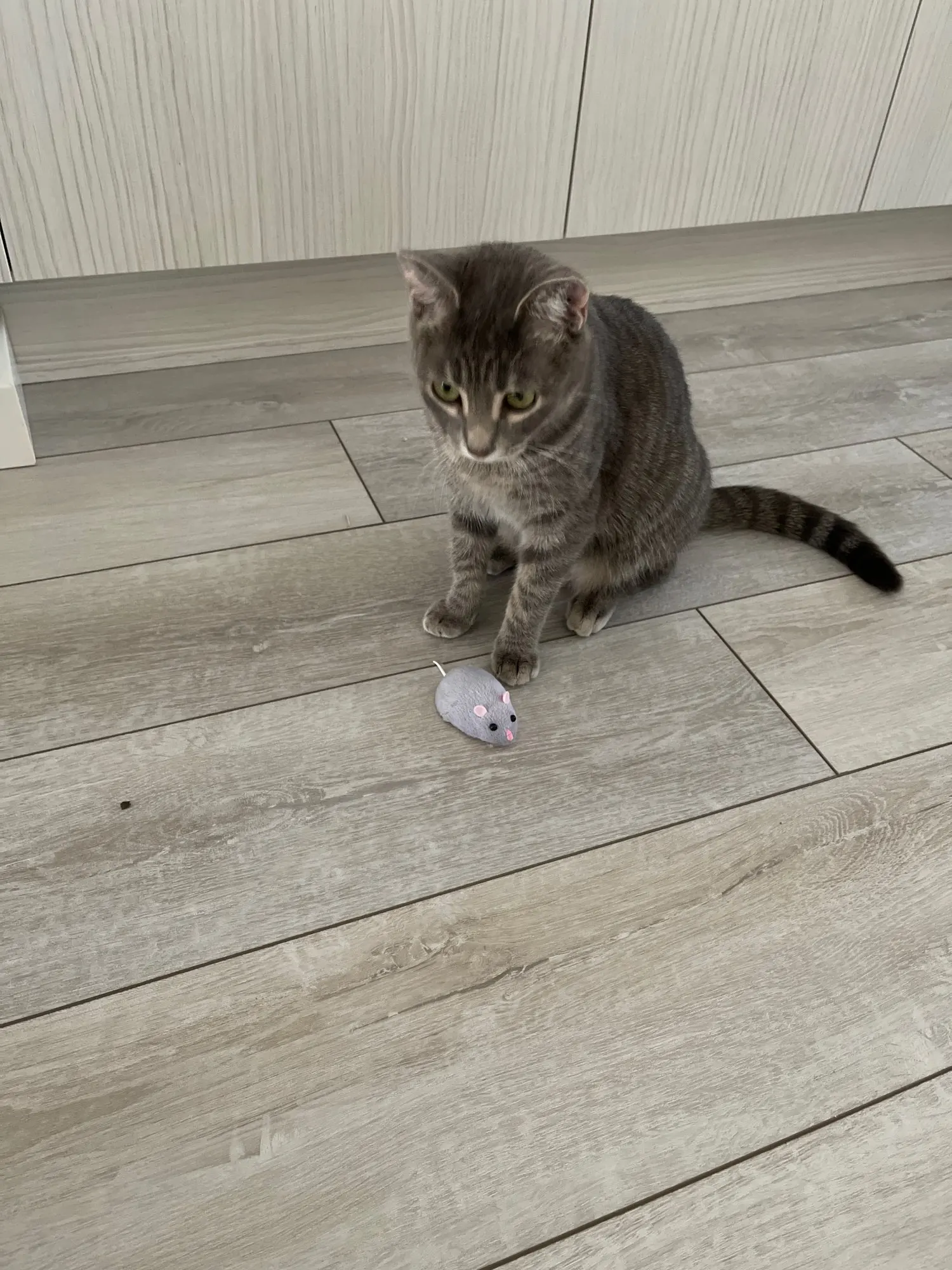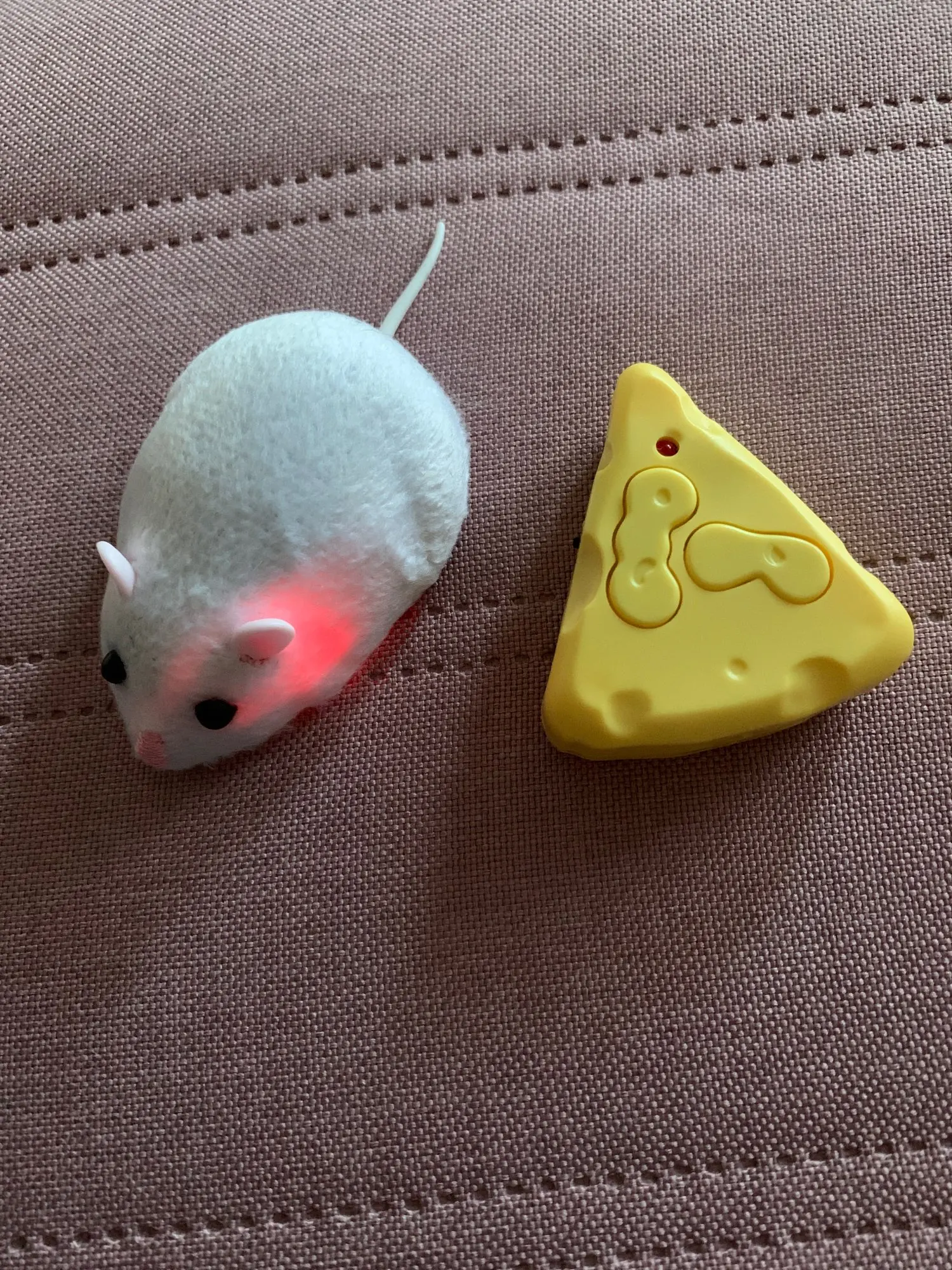 Товар пришёл быстро. Вставил батарейки (в комплект не идут, покупал отдельно) и проверил. Мышь довольно резво бегает, но только по идеально чистому полу. Через минуту игры мышь собрала все волосинки, и перестала двигаться. Пришлось чистить