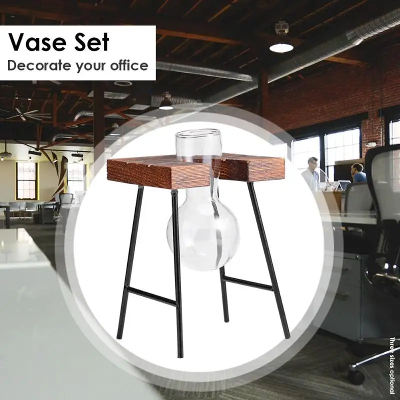 Креативная стеклянная ваза с деревянной рамкой, ваза для гидропонных растений, винтажный цветочный горшок, настольный бонсай, ваза для цветов, украшение для дома