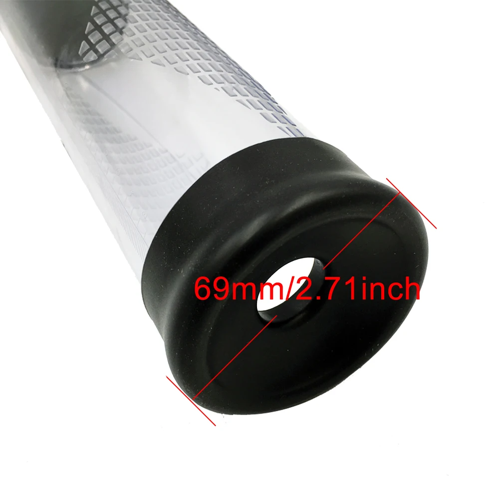 Этот продукт предназначен для людей и пар, пожалуйста, храните гигиену до и после использования.Для вашего здоровья, пожалуйста, не чрезмерно используйте продукт.Характеристики:Прозрачная трубка длина: 21,5 см/8,46 ??, Внутренний диаметр: 6 см/2,36? (приблизительно)Черный Длина трубки: 22,5 см/8,86? (приблизительно)С ручкой-держателем и Размер: 21,5 см x 6 см/8,46? X 2,36? (приблизительно)Силиконовые чехлы Диаметр: 6 см/2,36? (эластичность) (приблизительно)Посылка: 25 см x 10 см x 7 см/9,84? X 3,93? X 2,76? (приблизительно)Материал: АБС-пластик + силиконЦвет: прозрачный + черныйКоличество: 1 шт.