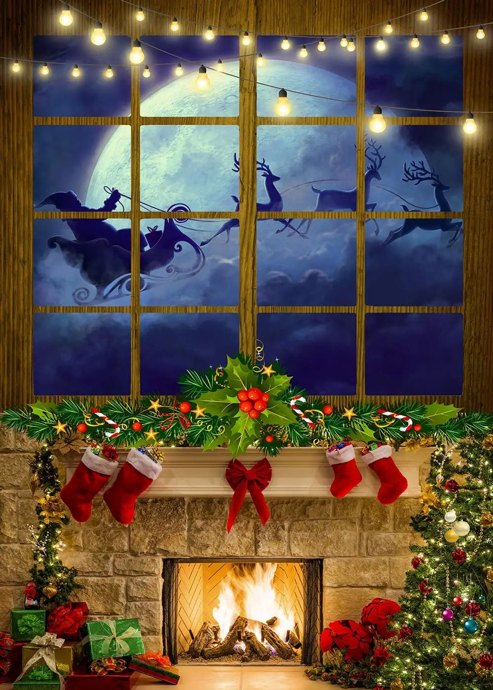 Фон для фотосъемки Capisco С Рождеством и новым годом с изображением камина Санта-Клауса и рождественской елки для студийной фотосъемки