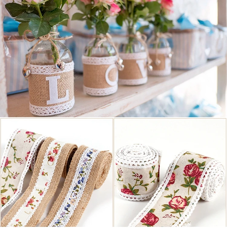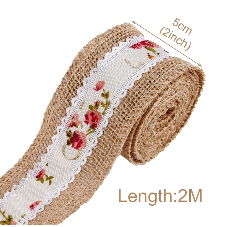 Цветочный узор QIFU 2 м, натуральная джутовая лента, деревенский Свадебный декор, винтажные центральные части свадебного стола, товары, свадебный подарок