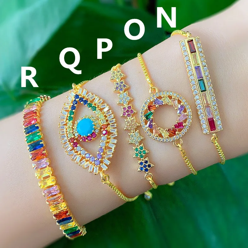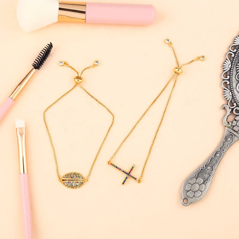 Женский браслет с цепочкой Lucky Eye, с разноцветными ракушками, с бусинами, золотистой цепочкой, с геометрическими подвесками, регулируемый, LE174