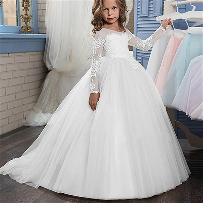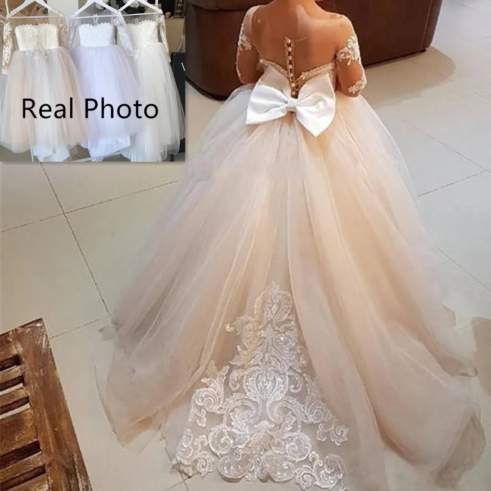 Платье с цветочным рисунком для девочек на свадьбу, торжественное мероприятие, с блестками и аппликацией-пачка принцессы с кружевным бантом для первого причастия