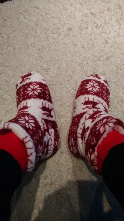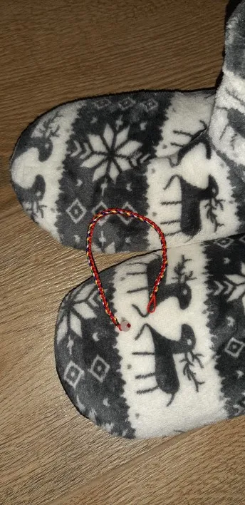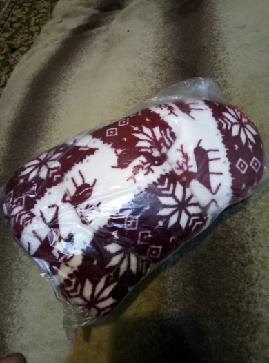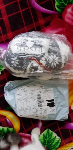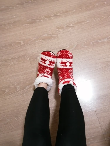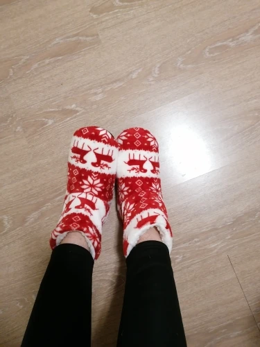 С момента заказа до получения посылки прошло 17 дней. Очень оперативно все сработали - и продавец и почта. Хотел жене на Новый год подарок под ёлку сделать - удалось. Тапочки пока спрятал. Они что-то среднее между теплыми носками и тапочками. Размерность вроде совпадает. Качество хорошее. Подошва прорезинена. Не скользит по паркету. Мягкие, теплые, легкие. Внутри белый искусственный мех. Снаружи ткань с рождественским рисунком. Продавец положил подарок - браслетик из разноцветных ниток. Всем здоровья! И с наступающим новым годом!