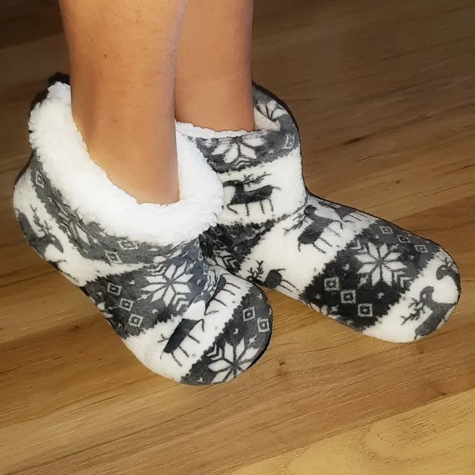 Беру уже вторые такие, за первые передрались с сестрой)) Очень нравятся, тёплые, толстенькие, не скользят. Подошва толстая, но не жёсткая, на кафельном полу холода не чувствуется. А главное реально сохраняют ноги тёплыми даже у мерзляков.