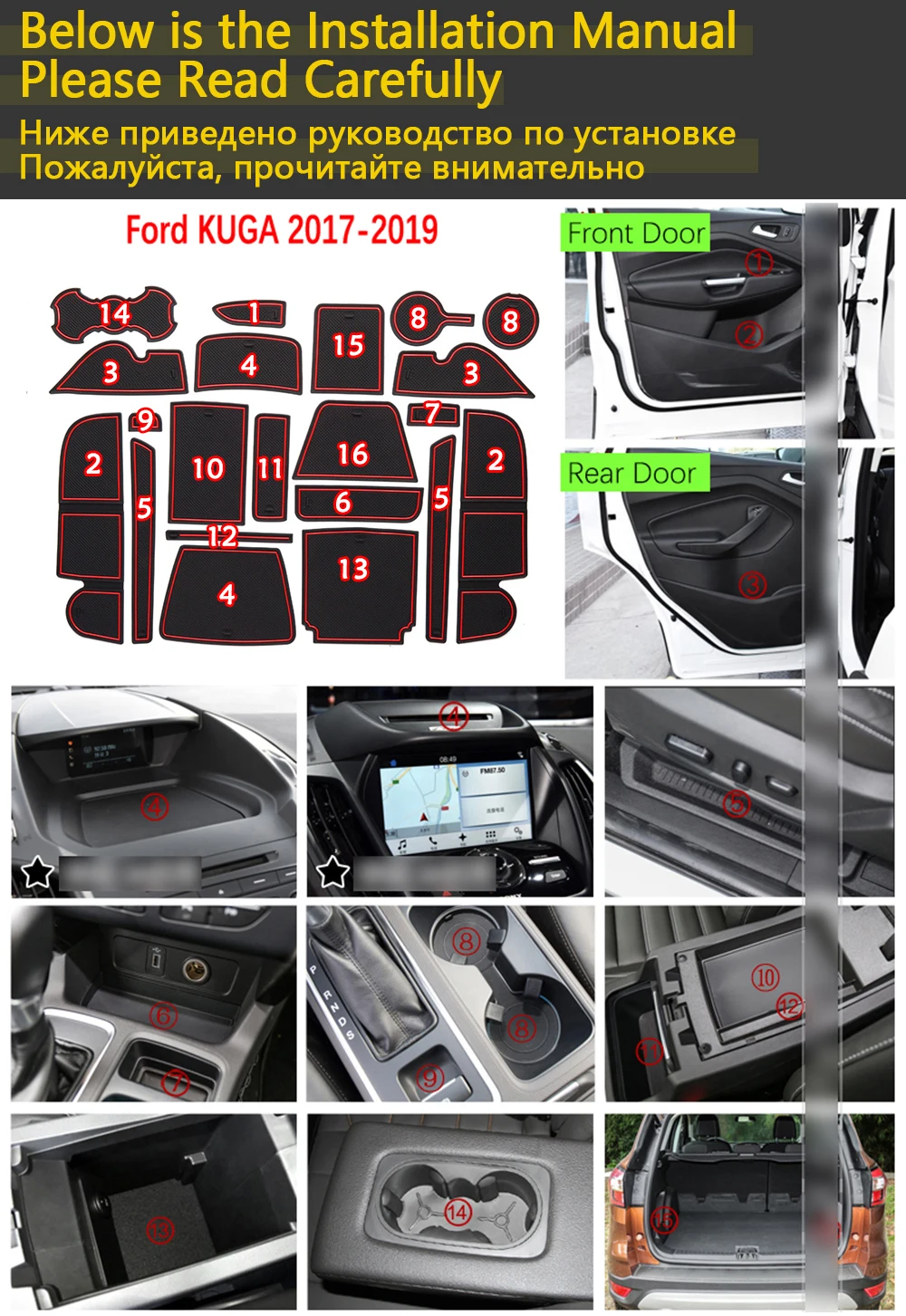 Противоскользящий резиновый коврик для подстаканника, дверной паз для Ford KUGA ESCAP MK2, Facelift C520 2017 2018 2019, аксессуары, коврик для телефона